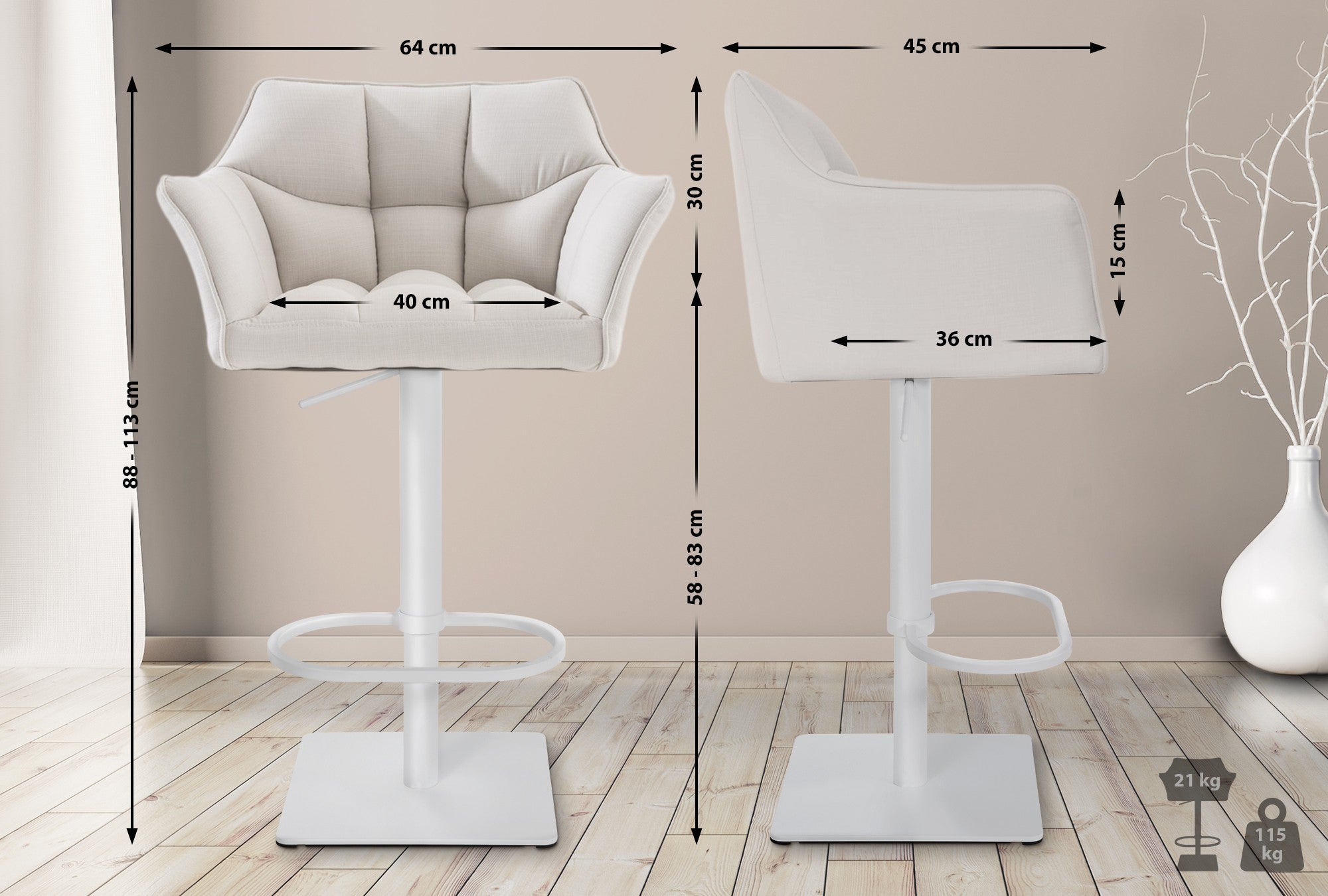 Lot de 2 tabourets de bar réglable en tissu blanc assise enveloppante capitonnée et avec base carrée en métal blanc 10_0006794