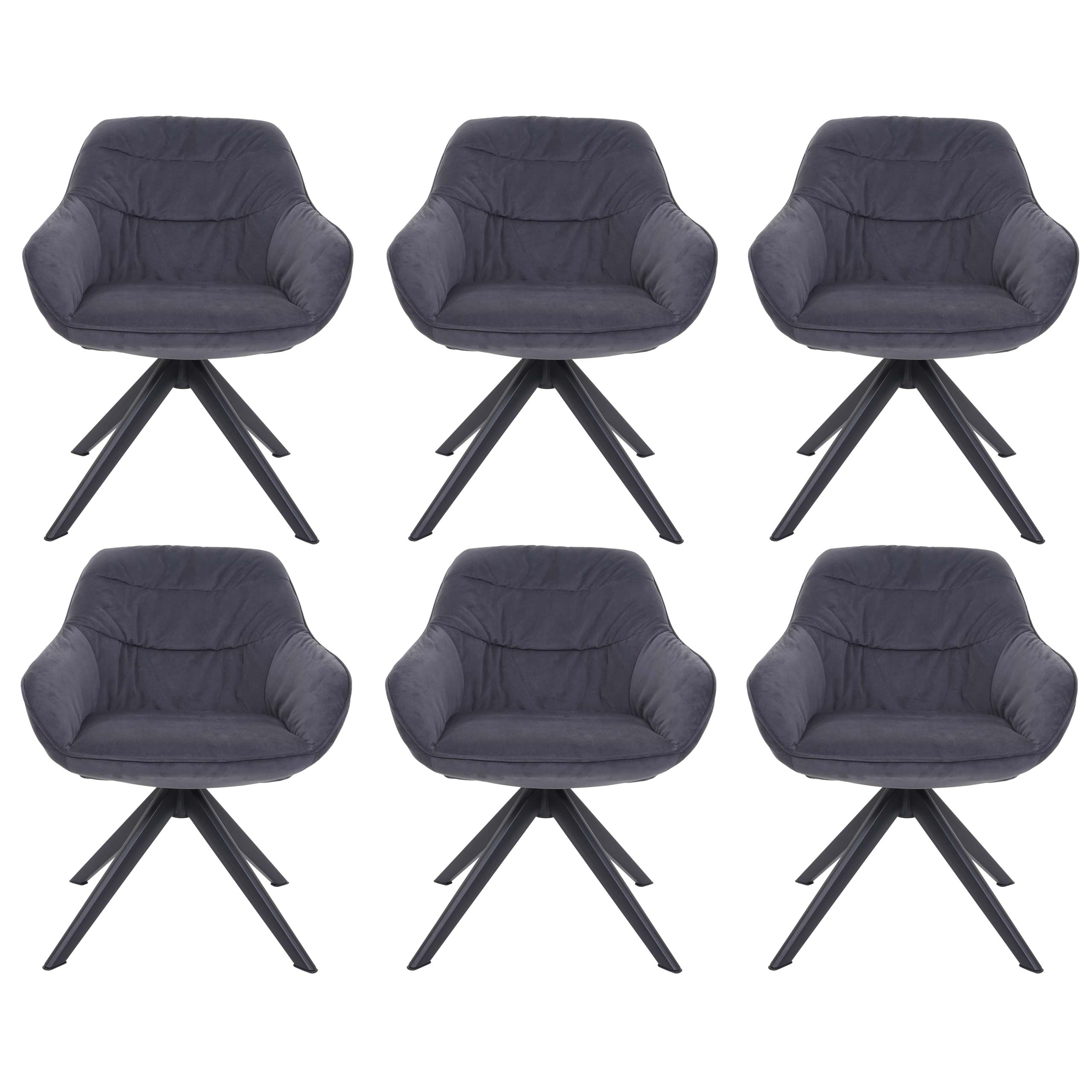 Lot de 6 chaises de salle à manger rembourrées avec accoudoirs pivotantes métal et tissu gris 04_0007718