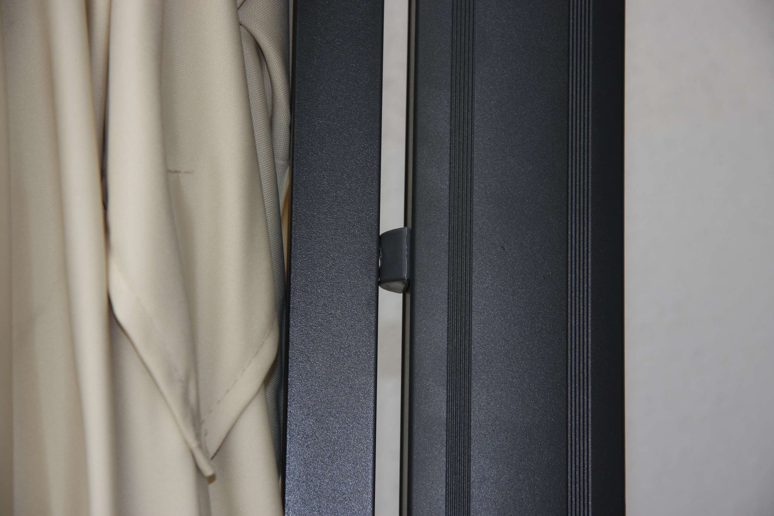 Contenu de la livraison : 1x parasol déporté, avec base en croix, porte-parasol et plaque rotative