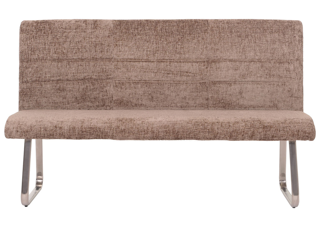 Les coutures décoratives sur les dossiers donnent à ces meubles un petit quelque chose de particulier. Les pieds en acier inoxydable assurent la stabilité et font de la chaise rembourrée et du banc de cuisine un véritable accroche-regard.