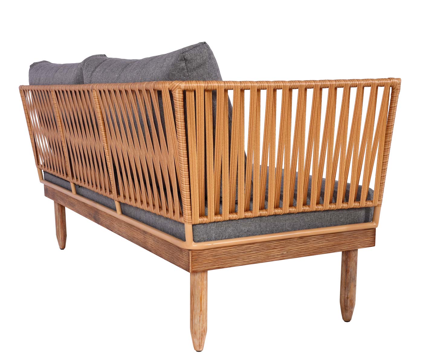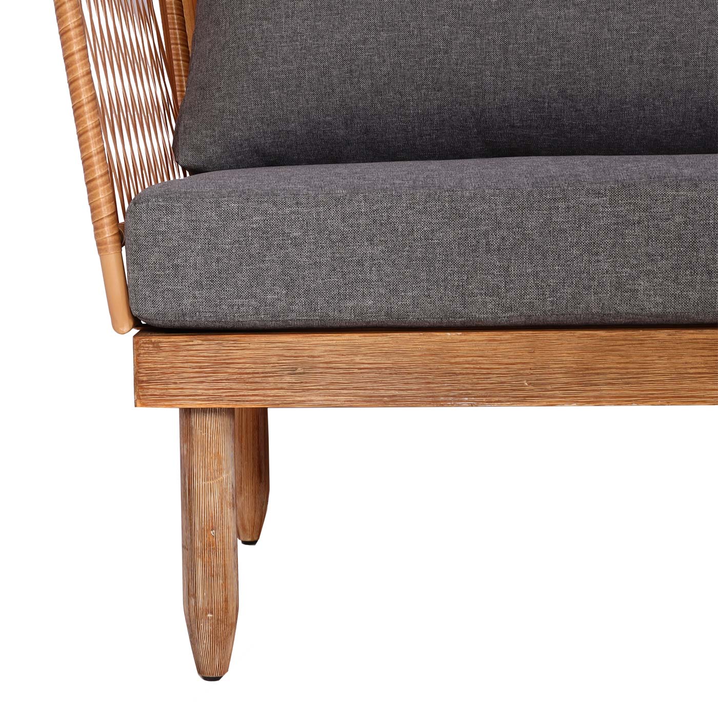 Salon de jardin canapé fauteuil et table en bois d'acacia acier et coussins gris foncé 04_0008317