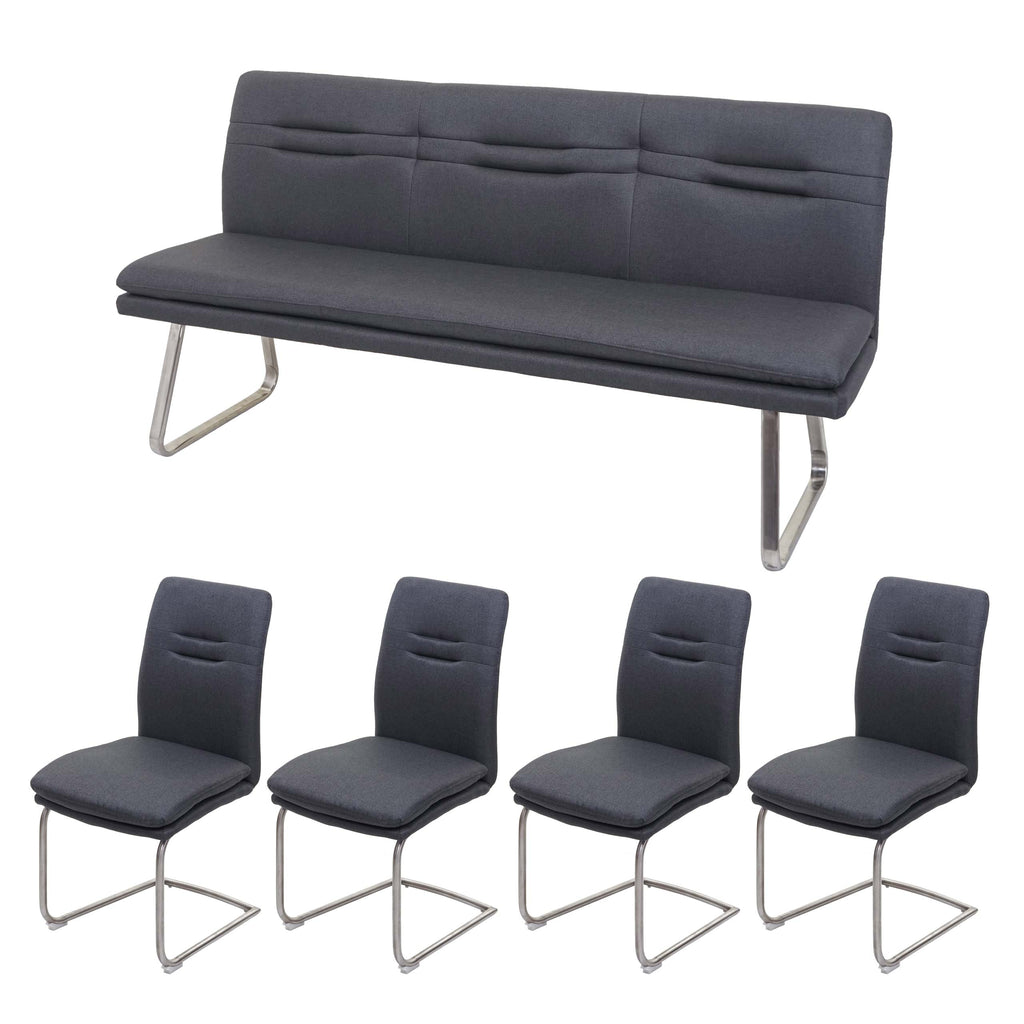 Ensemble de salle à manger 4x chaise de salle à manger et 1x banc en tissu gris foncé et acier inoxydable brossé 04_0006739