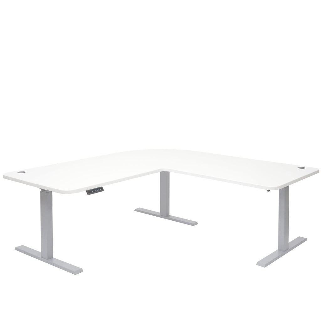 Bureau d'angle table d'ordinateur réglable en hauteur électriquement 178 x 178 cm HDF couleur blanc pieds acier gris 04_0006022