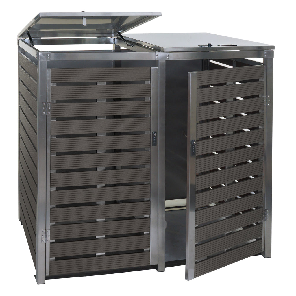 Cache-poubelle abris poubelle vérouillable 117x144x102 cm wpc acier inoxydable aspect noyer 04_0006088