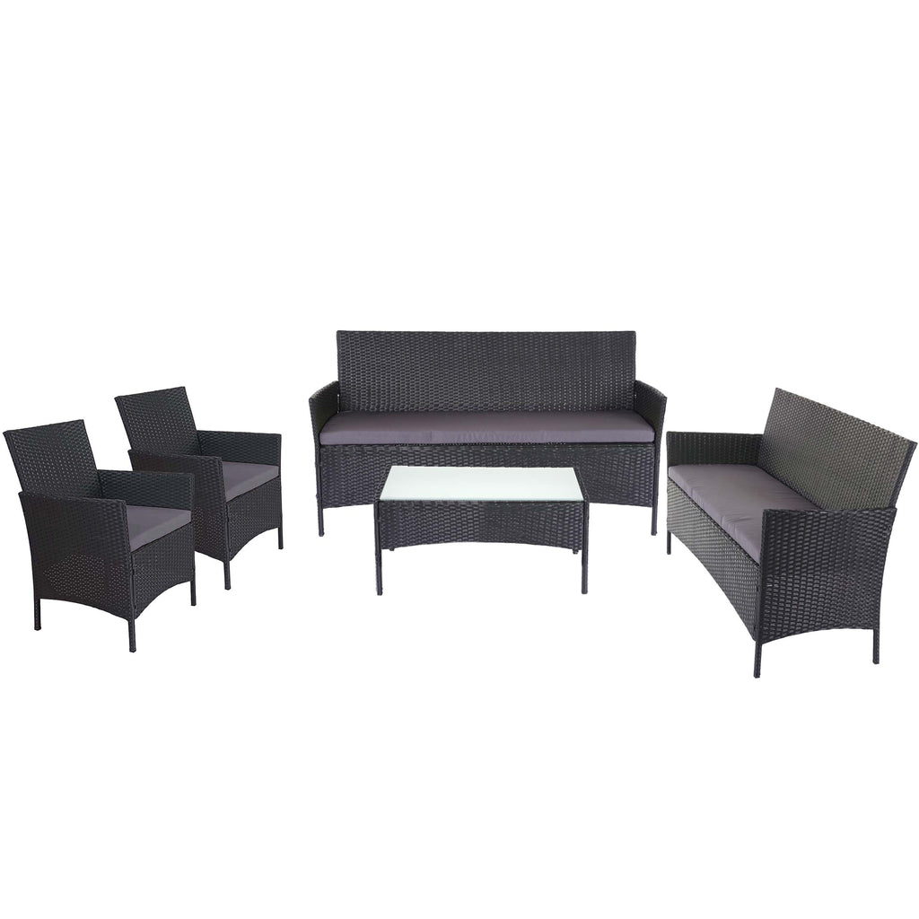 Salon de jardin en polyrotin avec fauteuils bancs et table anthracite coussin anthracite 04_0005727