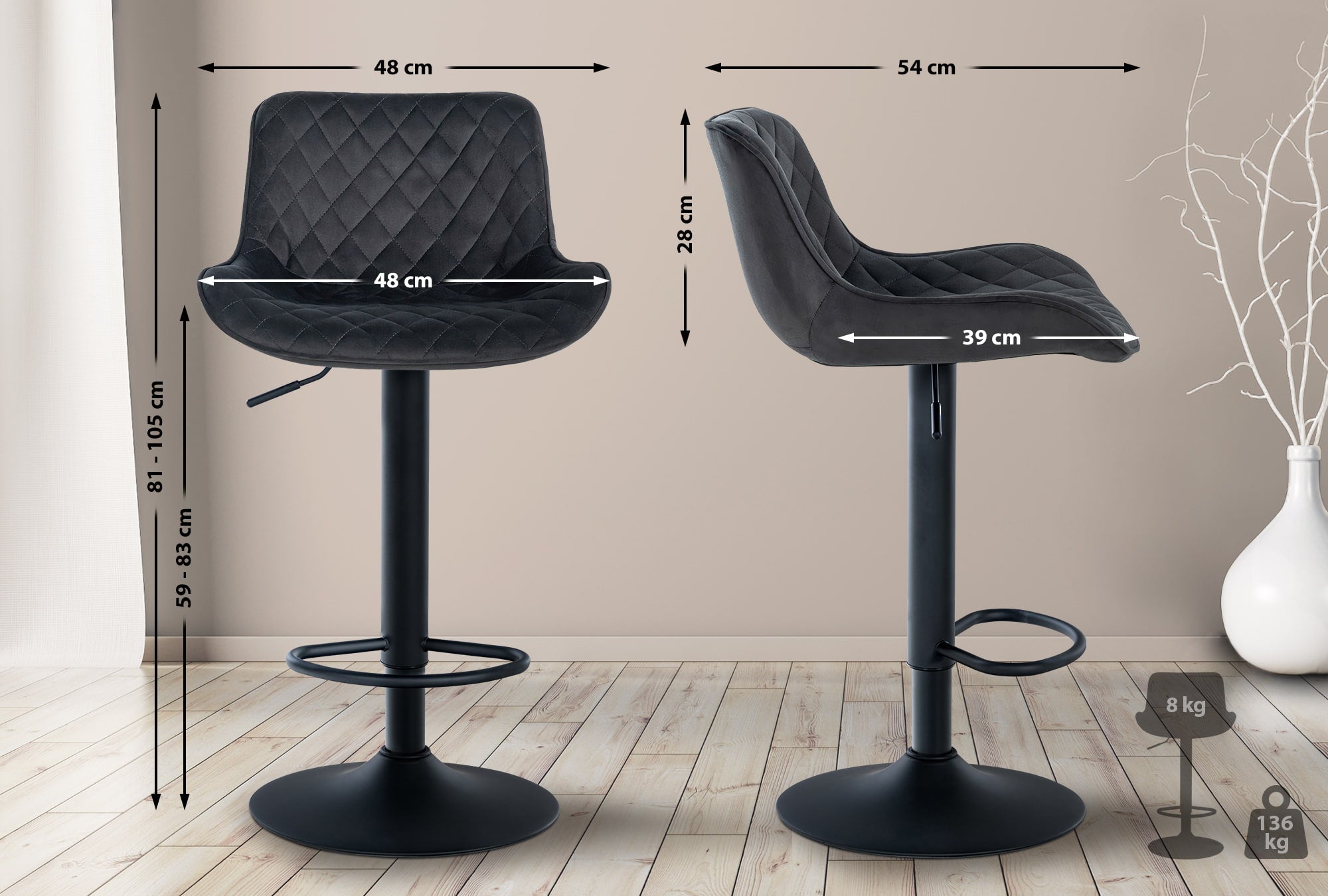 Grâce au vérin à gas prévu dans la colonne de la structure, ces tabourets de bar sont réglables en hauteur.