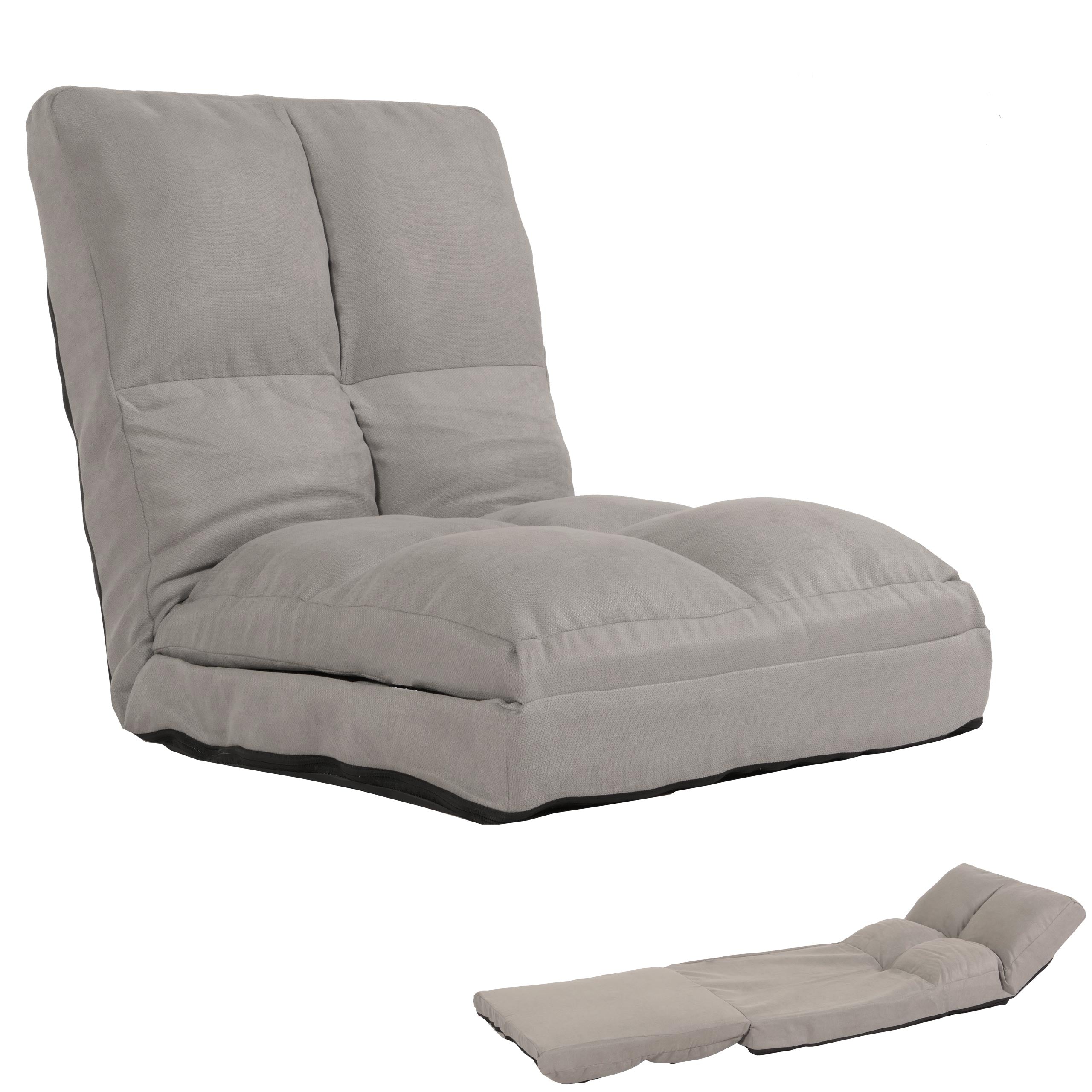 Fauteuil de sol pliant avec fonction lit cadre en acier revêtement en velours gris clair 04_0006372