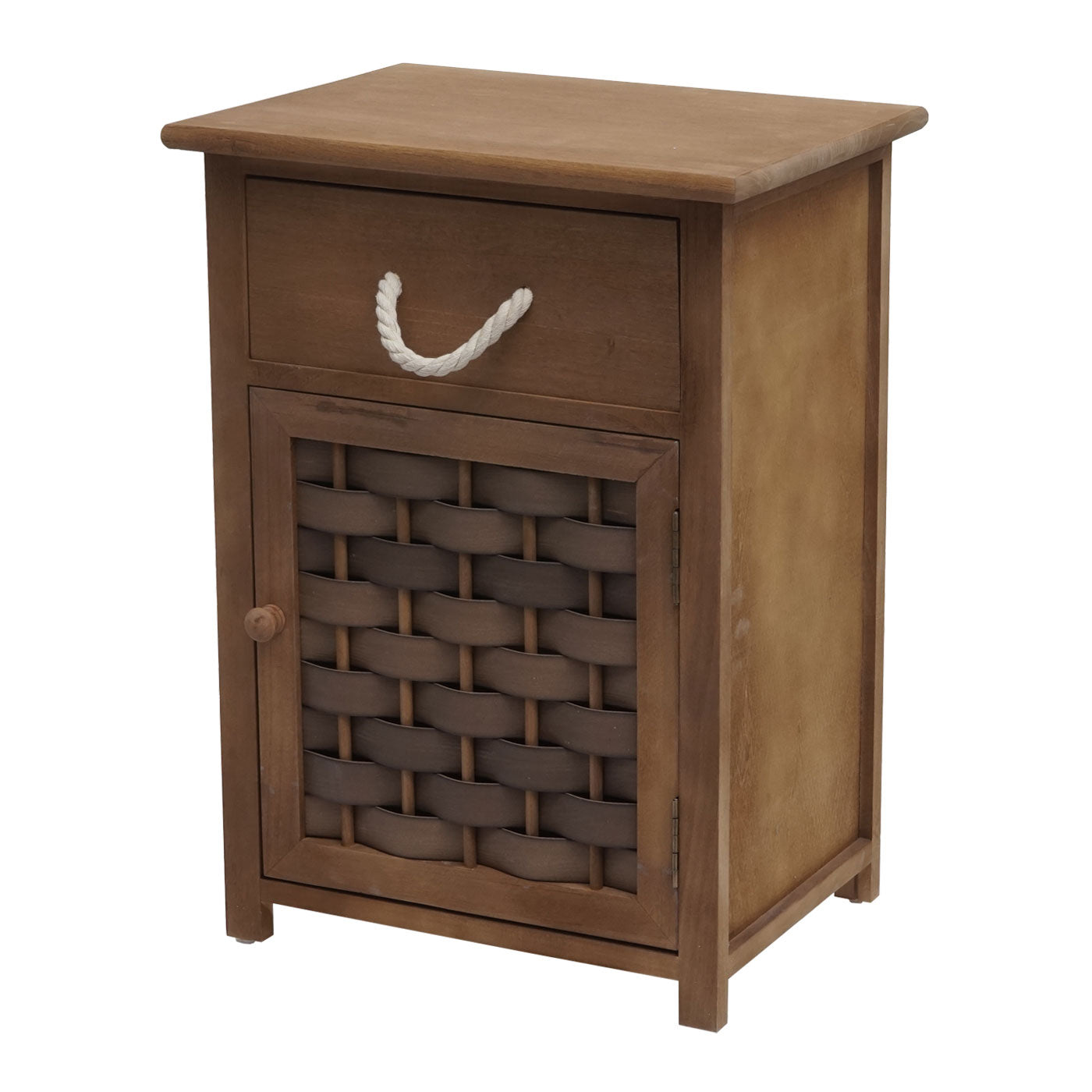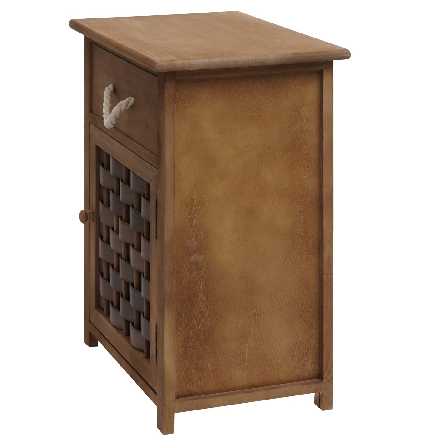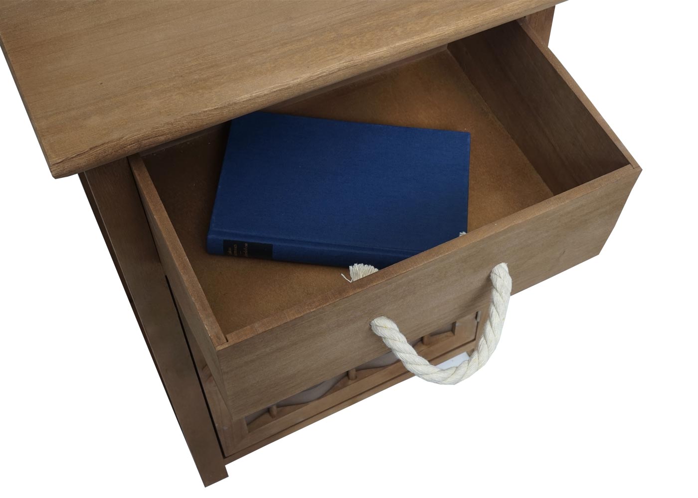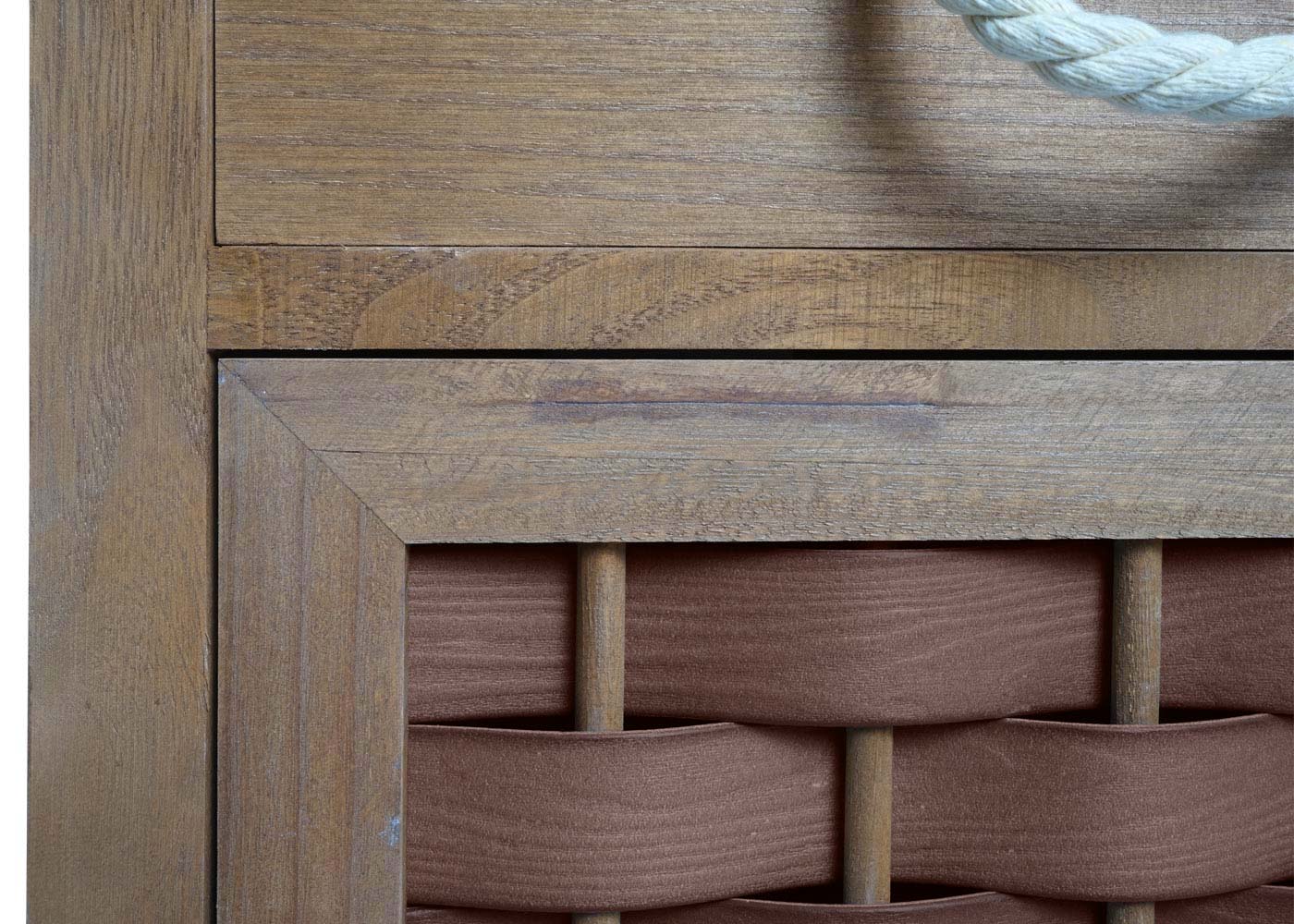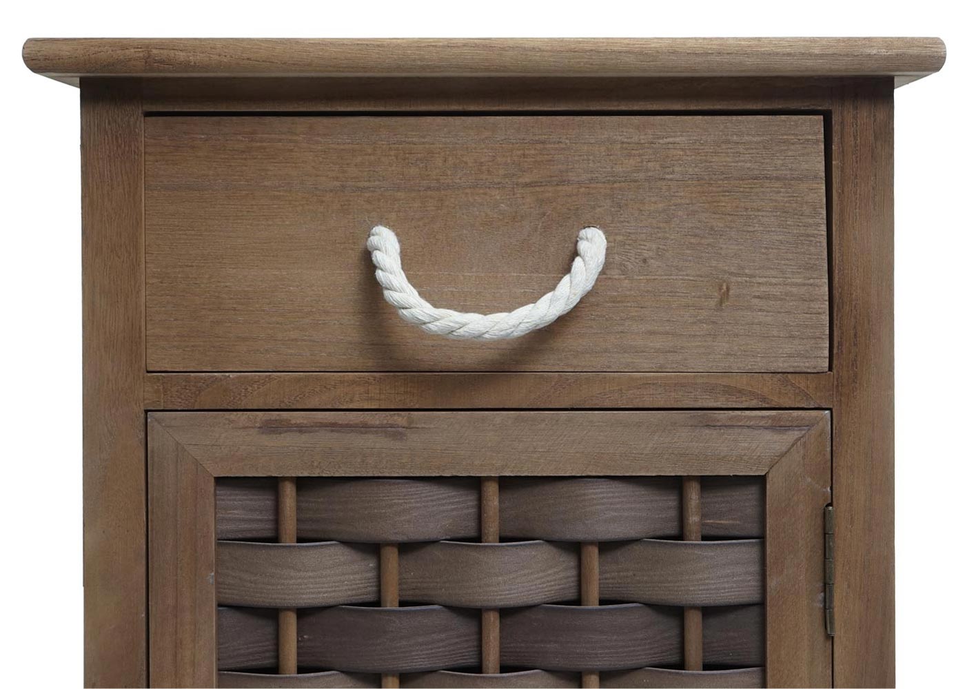 Grâce au tiroir avec une jolie poignée en fibres naturelles et aux deux compartiments, cette armoire. offre beaucoup d'espace de rangement.