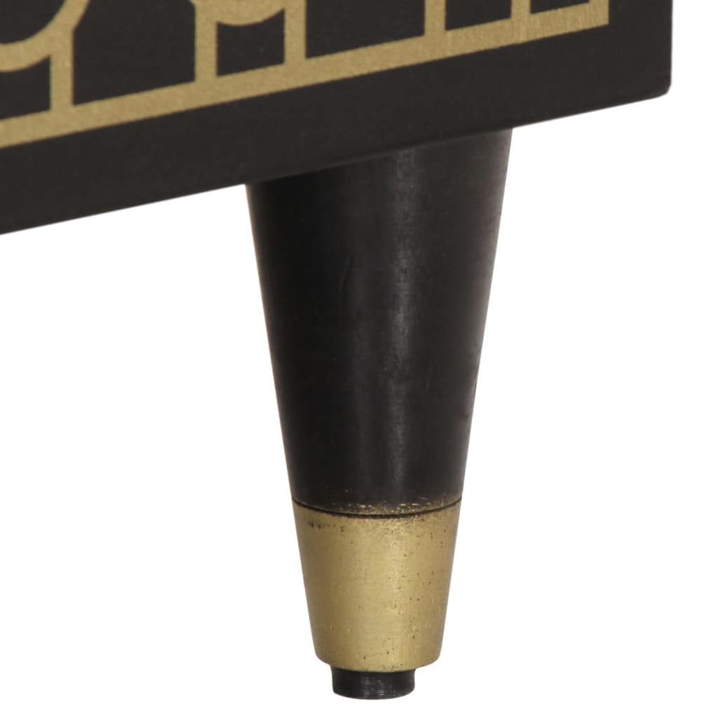 Table de chevet avec tiroir et compartiment avec portes motif sculpté à la main 50 x 33 x 60 cm bois de manguier noir et fer DEC033047