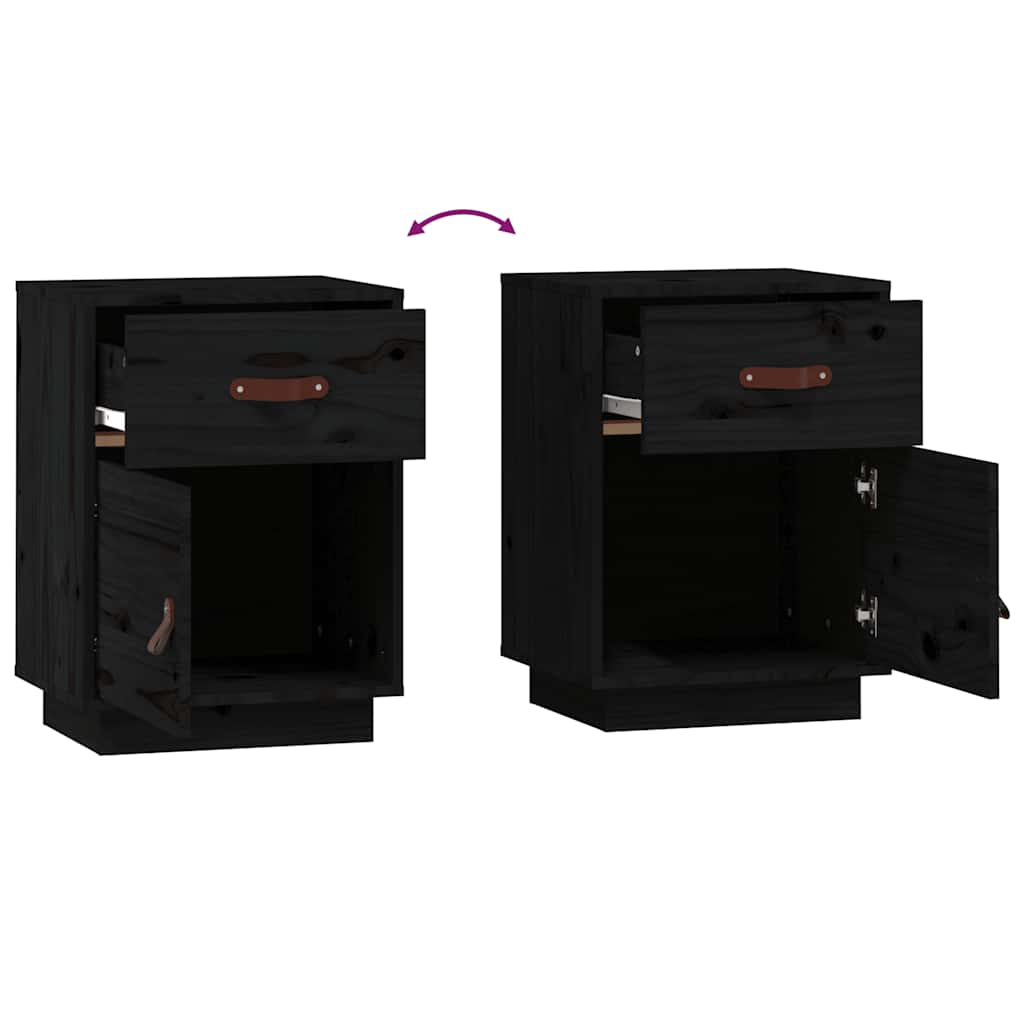 Table de chevet avec tiroir et compartiment avec porte 40 x 34 x 55 cm bois de pin solide noir DEC034422