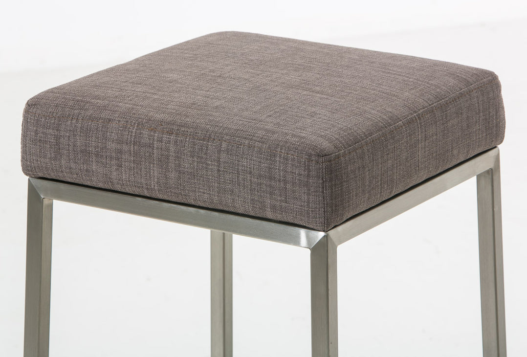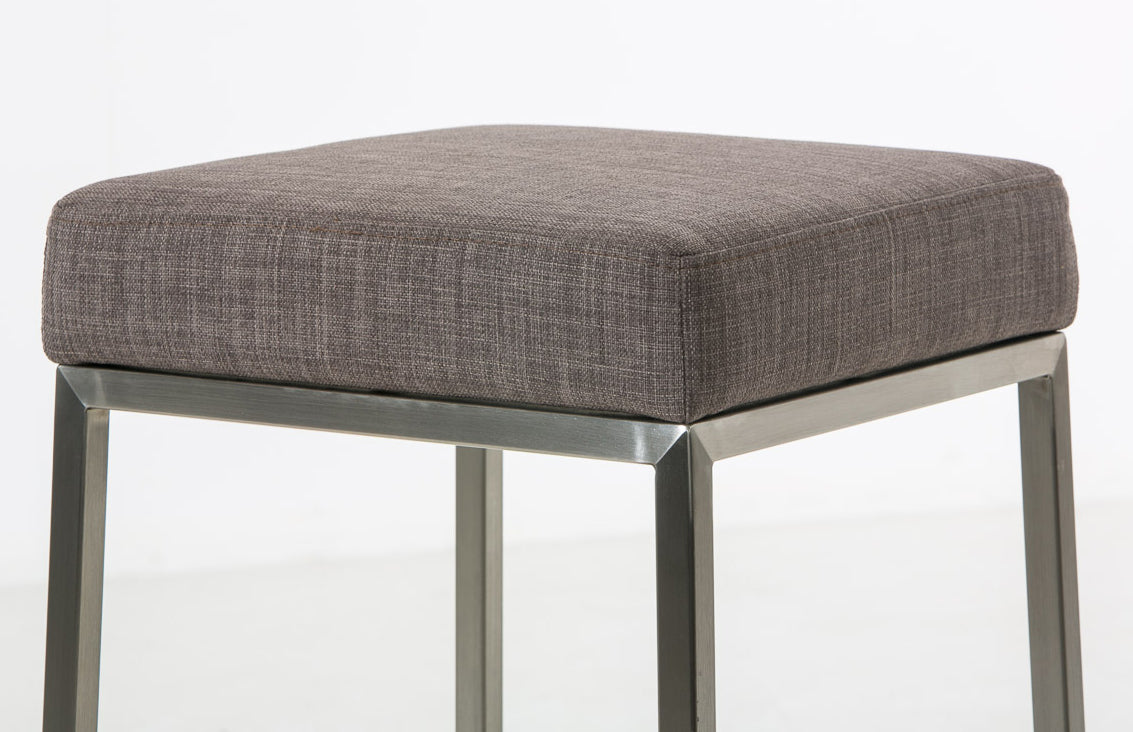 Les assises carrées des tabourets de bar sont confortables, même sans accoudoirs ni dossiers. Le revêtement en tissu résistant et facile d'entretien garantit ce confort.