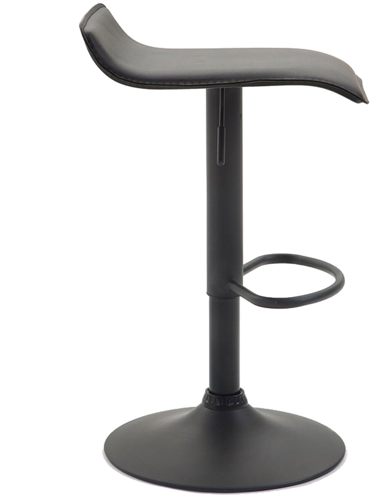 Ce tabouret de bar impressionne par son design élégant. Réduit à l'essentiel sans négliger le confort d'assise. L'assise incurvée recouverte de similicuir offre un confort agréable et, grâce à sa hauteur réglable, il s'adapte parfaitement à toutes les morphologies. Le repose-pieds intégré se règle en synchronisme avec la hauteur de l'assise. Ce réglage permet de rester assis confortablement pendant plusieurs heures. Le design est complété par le piètement trompette en métal qui confère au tabouret de bar sa stabilité. Le cadre est également équipé d'un patin de protection pour éviter les rayures et les dommages au sol. Un atout absolu pour une élégance sobre dans tout espace de vie.