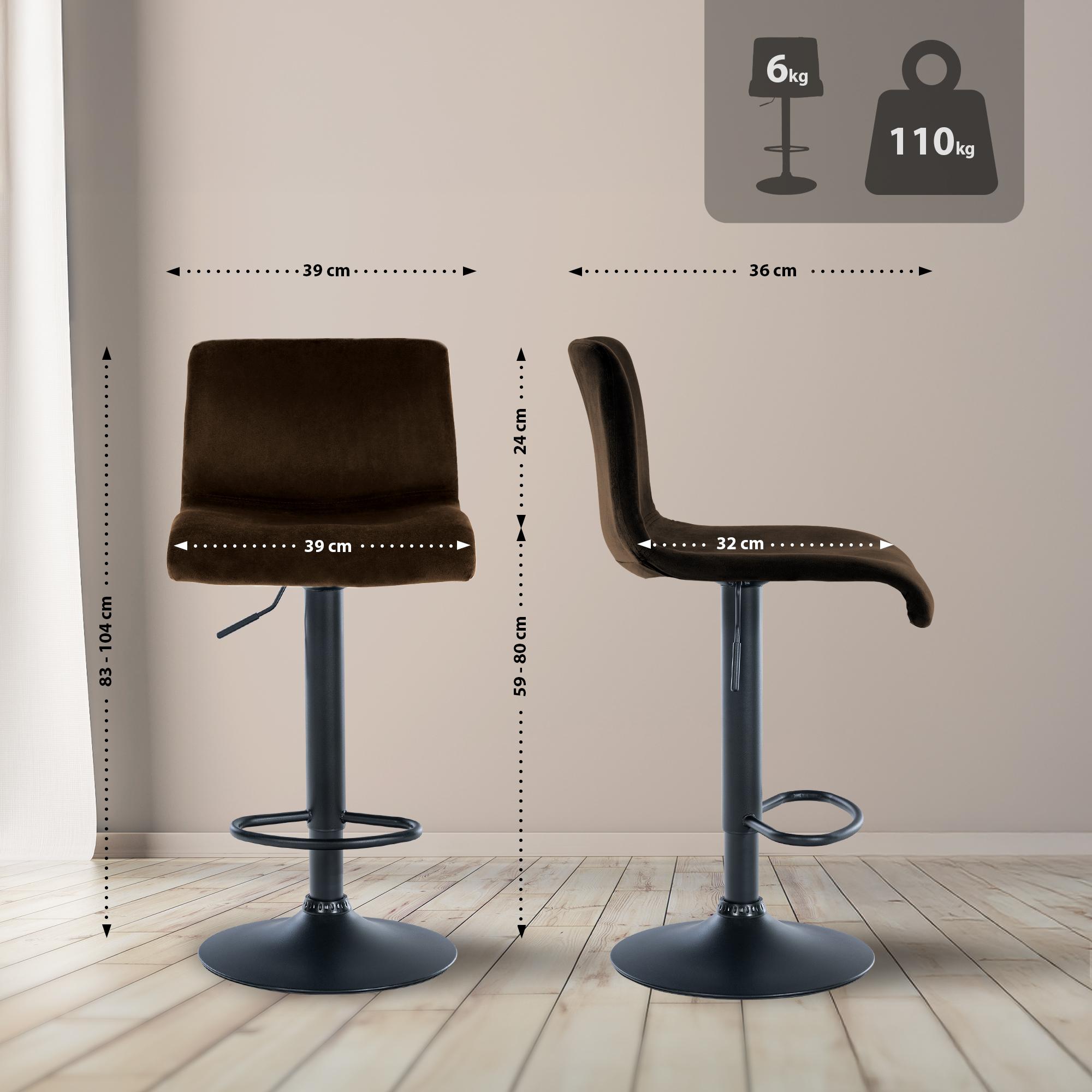 Tabouret de bar x1 repose-pieds hauteur réglable dossier bas en velours marron cadre métal noir 10_0006253
