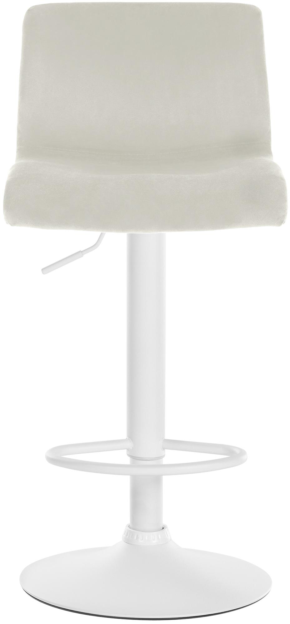Tabouret de bar x1 repose-pieds hauteur réglable dossier bas en velours crème cadre métal blanc 10_0005831