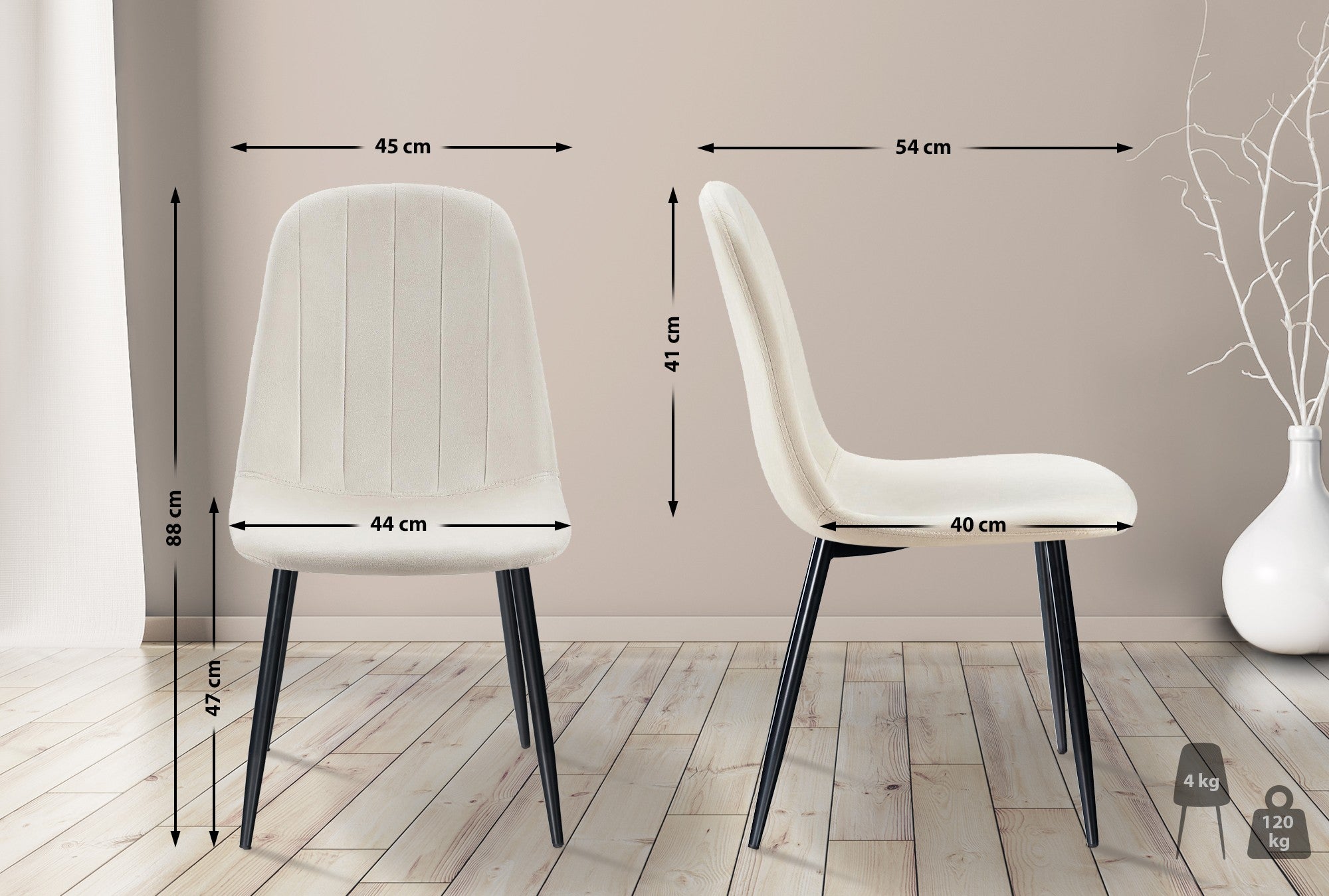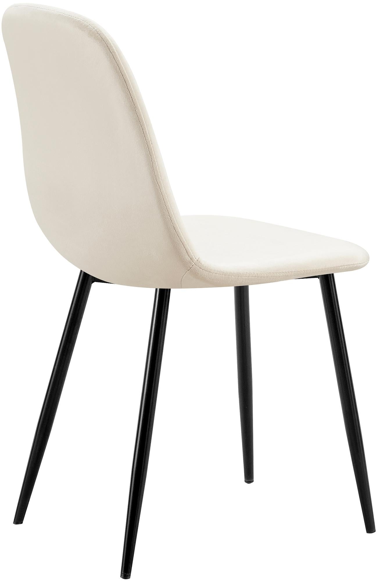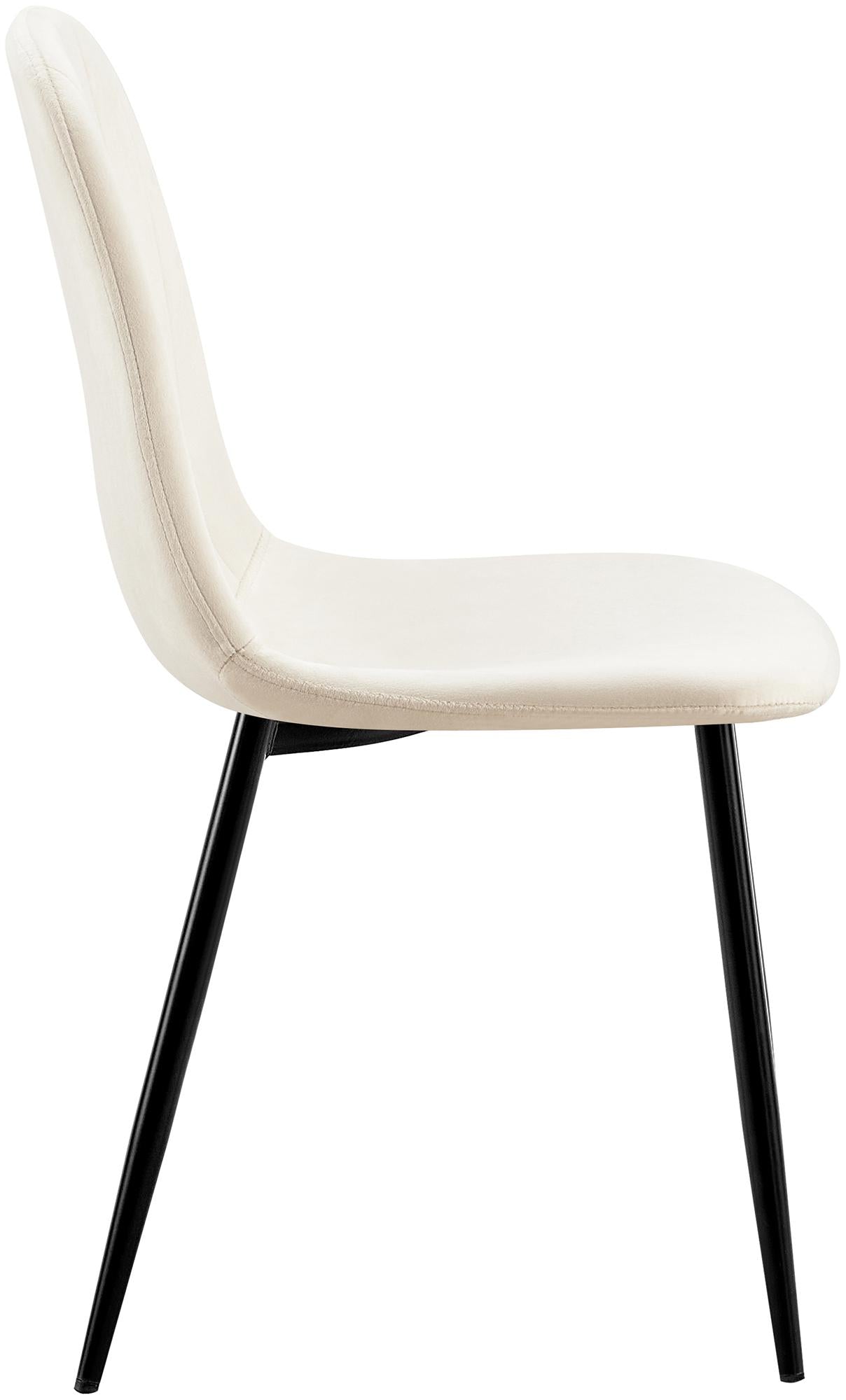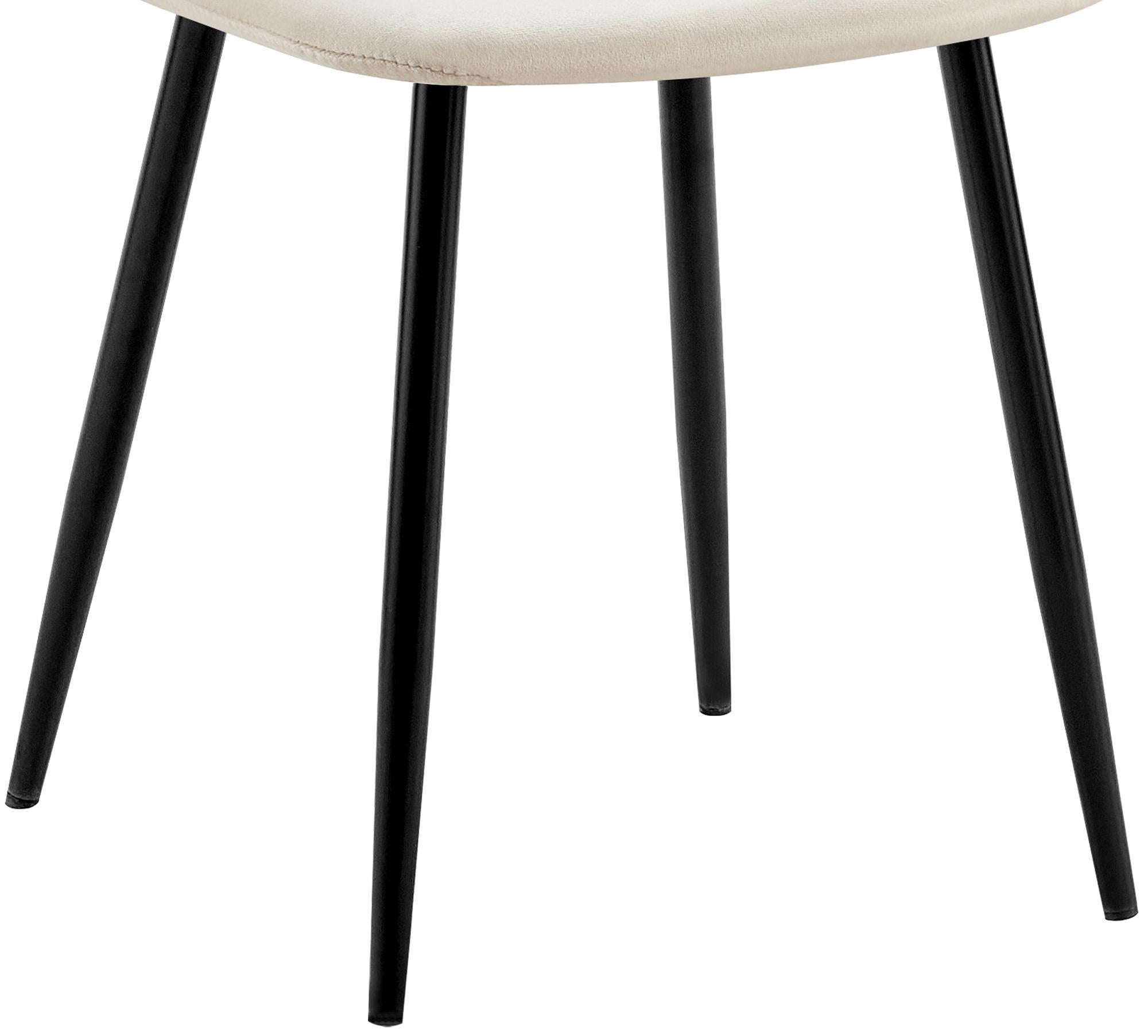 Chaise de salle à manger x1 design moderne coutures verticales velours blanc crème et pieds en métal noir 10_0001982