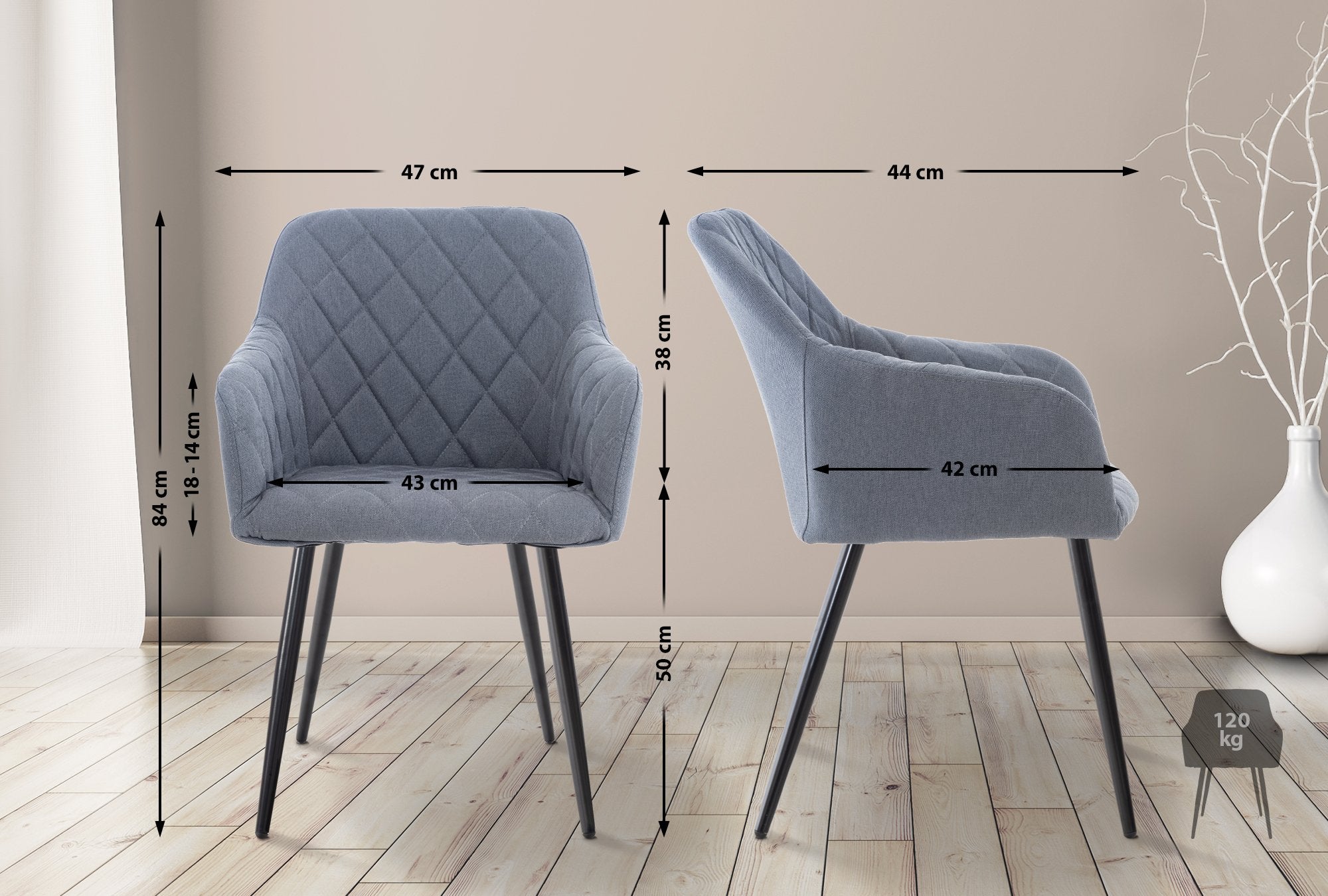 Chaise de salle à manger design retro coutures décoratives en losanges assise en tissu gris foncé 10_0002113