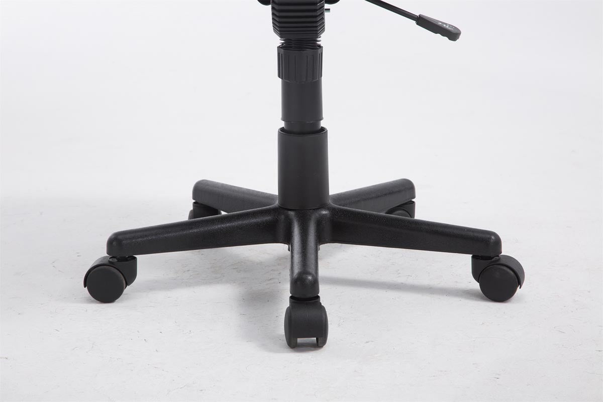 La chaise repose sur un piétement en plastique solide, conçu dans un système de 5 branches à roulettes légères qui assure la mobilité de ce fauteuil de bureau.