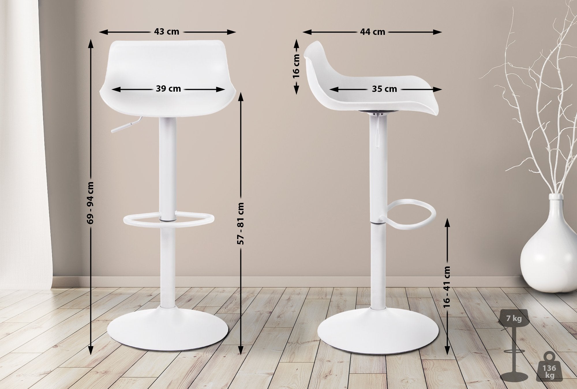 Tabouret de bar x1 avec repose-pieds cadre en métal blanc assise plastique blanc 10_0005592