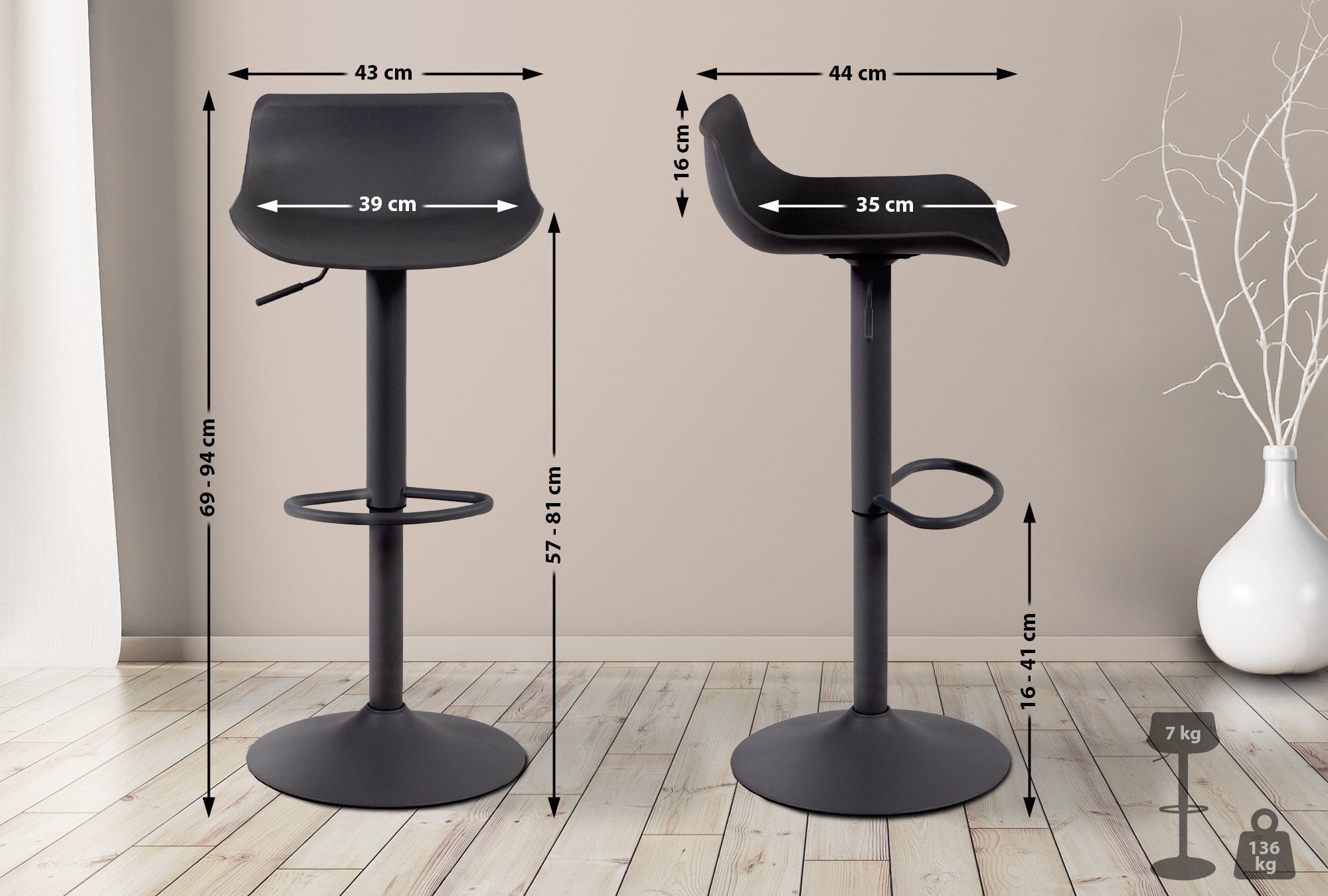 Tabouret de bar x1 avec repose-pieds cadre en métal noir assise plastique noir 10_0005593