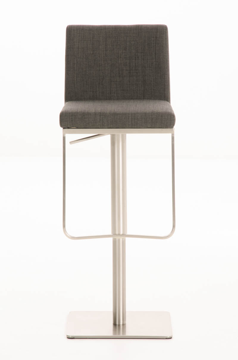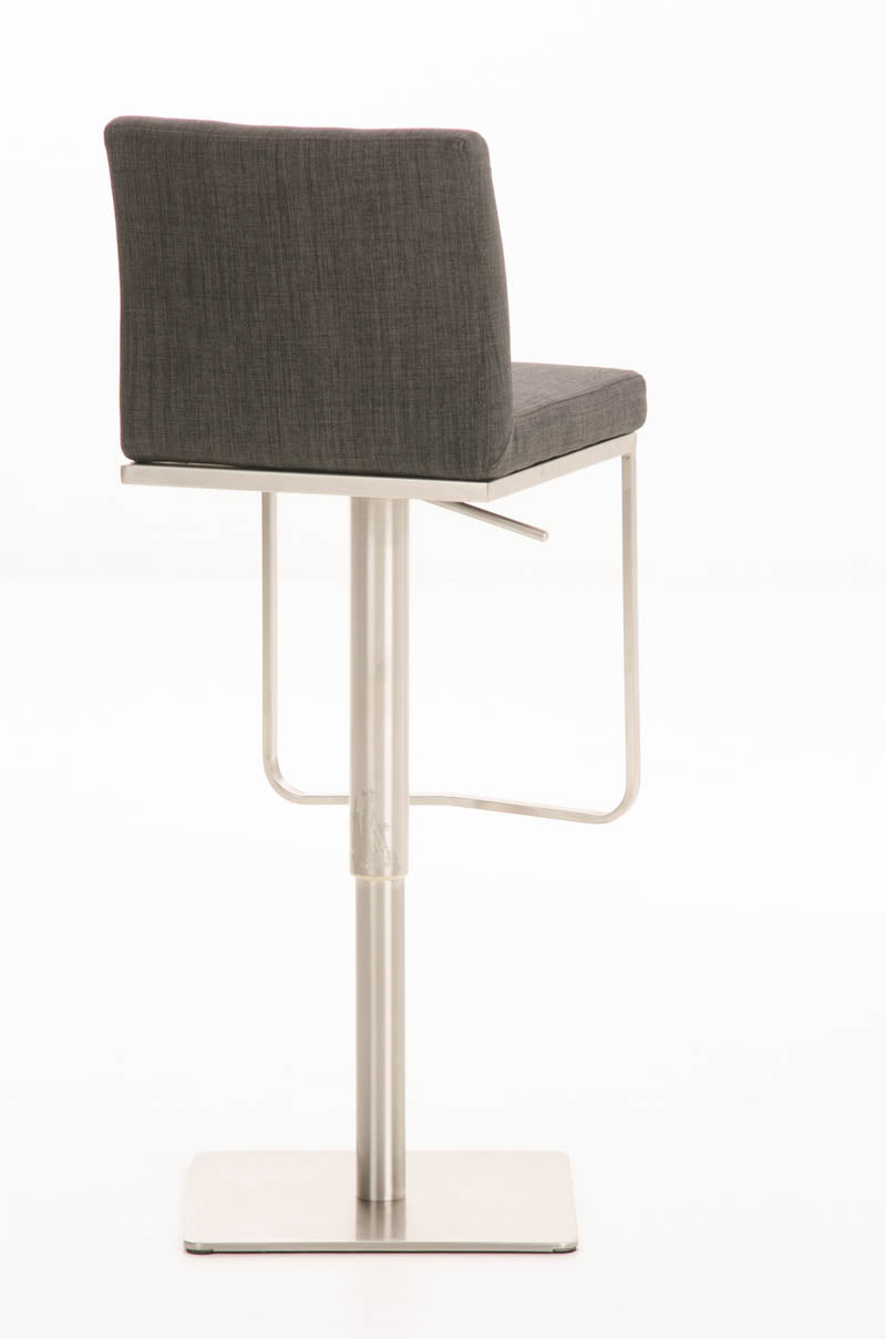 Tabouret de bar x1 avec repose-pieds plaque de base carrée en acier inoxydable assise en tissu gris foncé 10_0005315