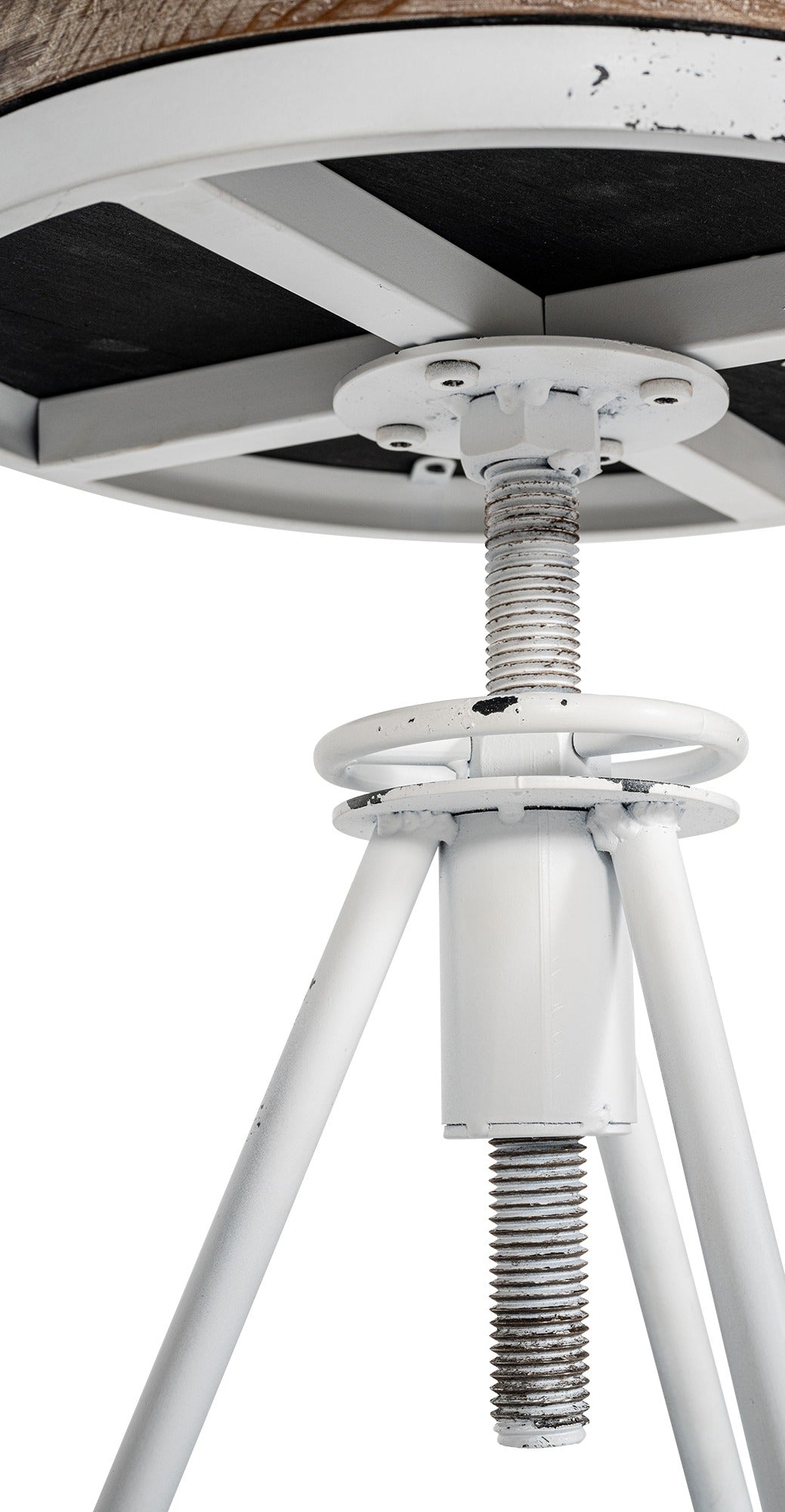 Tabouret de bar x1 réglable en bois massif et métal blanc vieilli – Style atelier vintage industriel 10_0006463