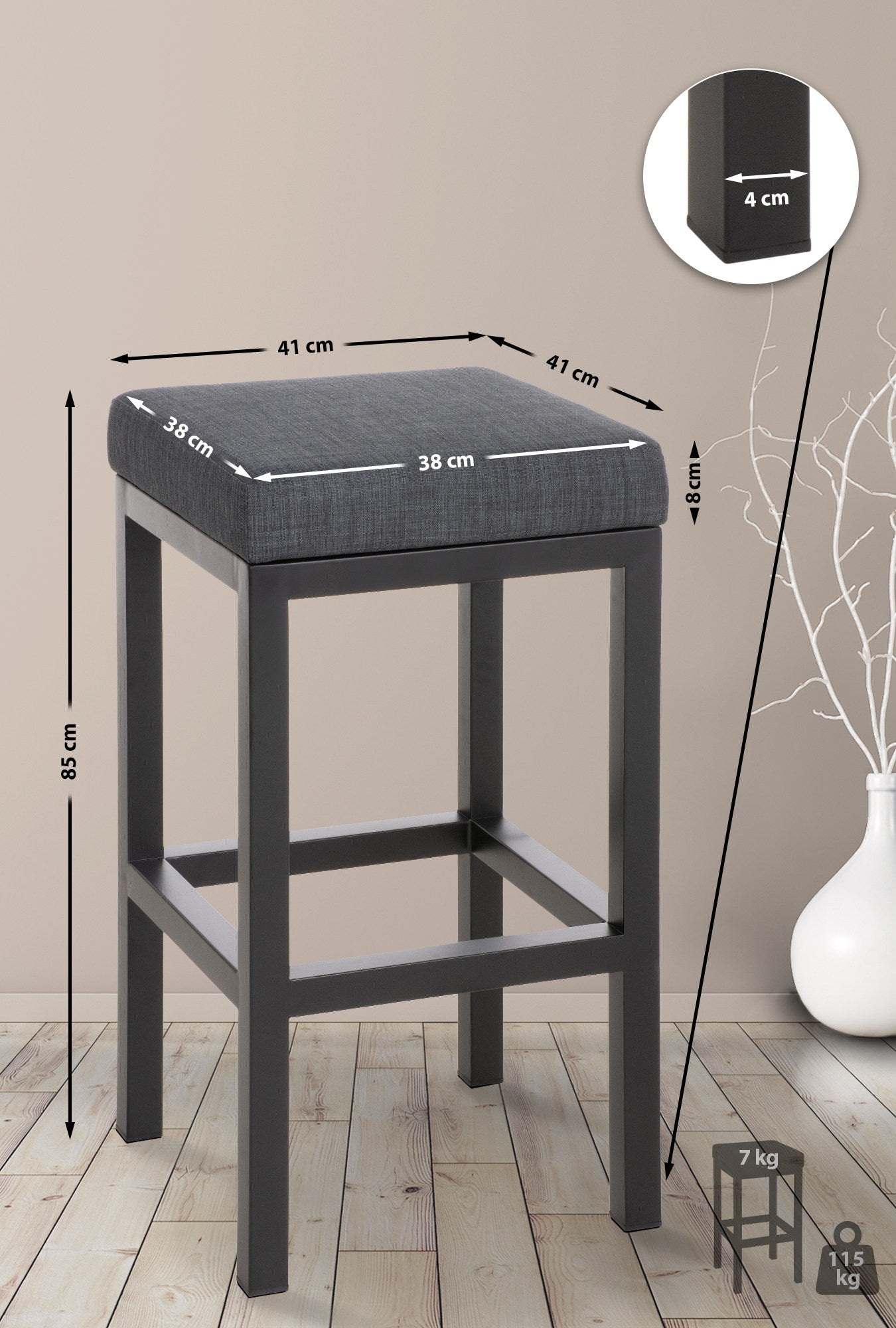 Tabouret de bar x1 avec repose-pieds design simple hauteur d'assise 85 cm en tissu gris foncé et support en métal noir 10_0005413