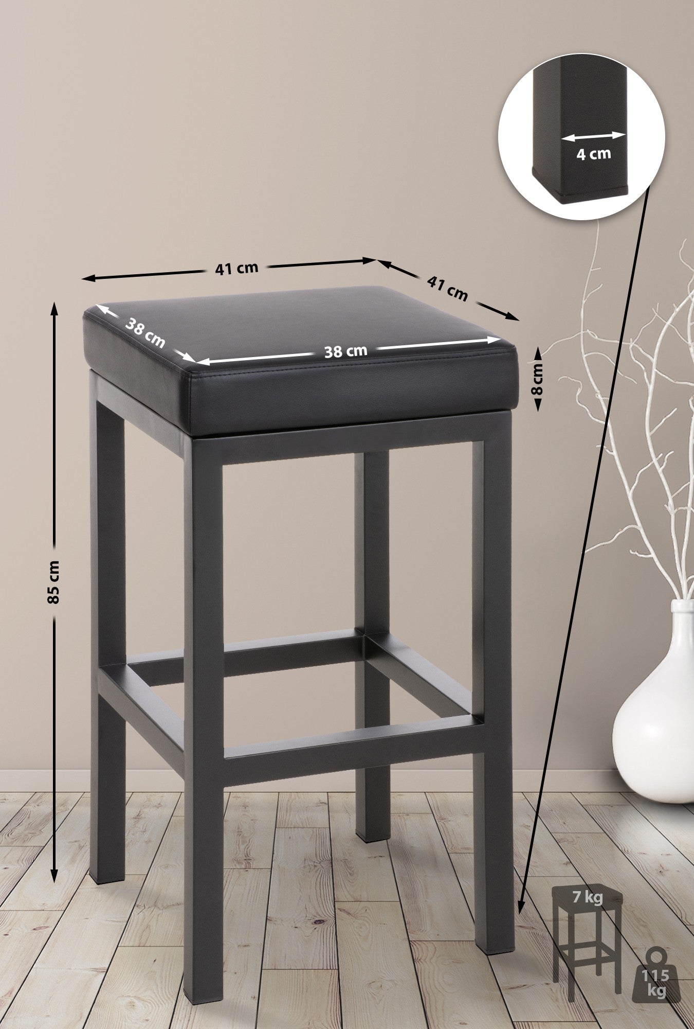 Tabouret de bar x1 avec repose-pieds design simple hauteur d'assise 85 cm en PVC noir et support en métal noir 10_0005410
