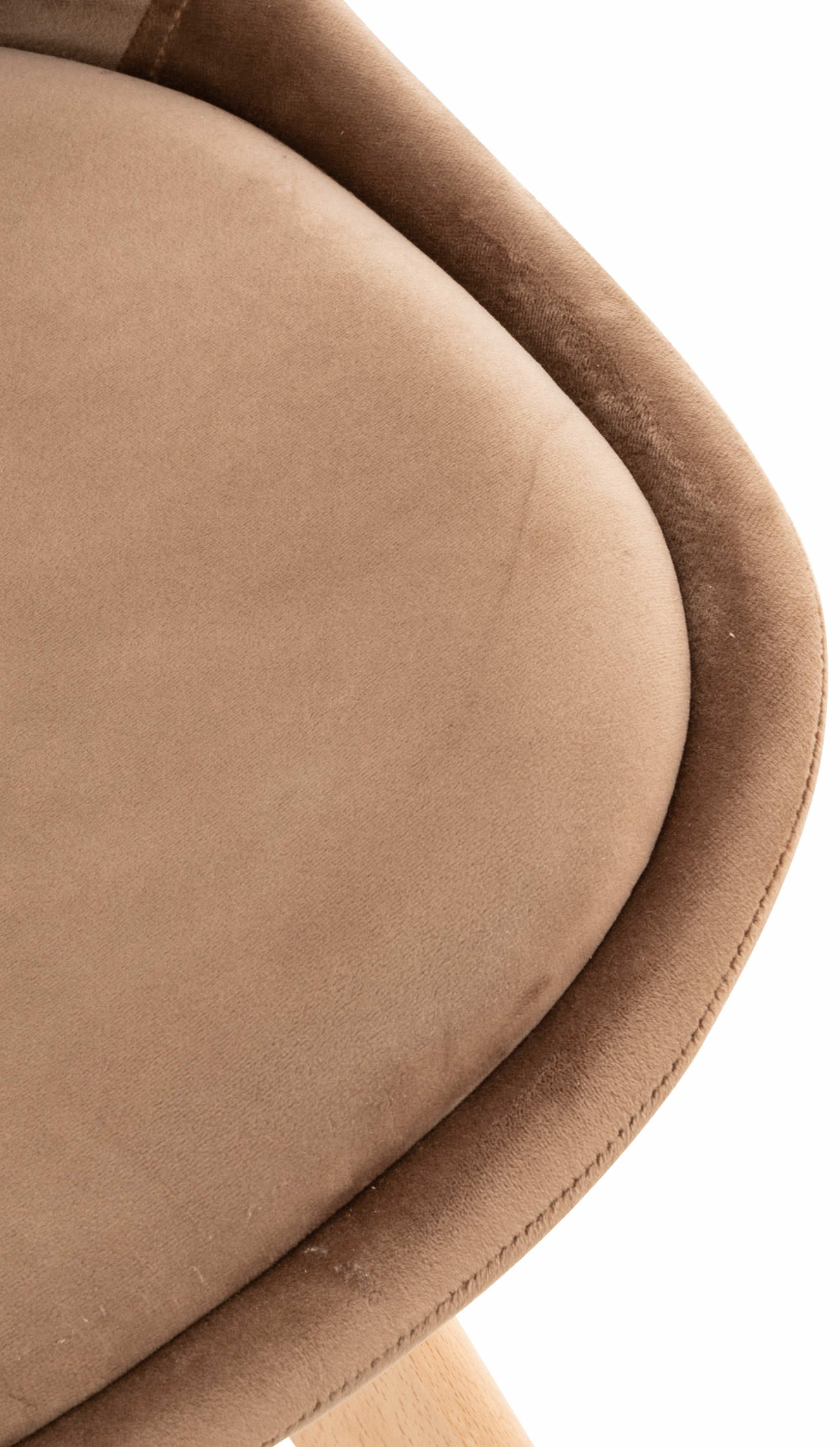 Chaise de salle à manger x1 design scandinave en velours marron et pieds en bois clair 10_0002281