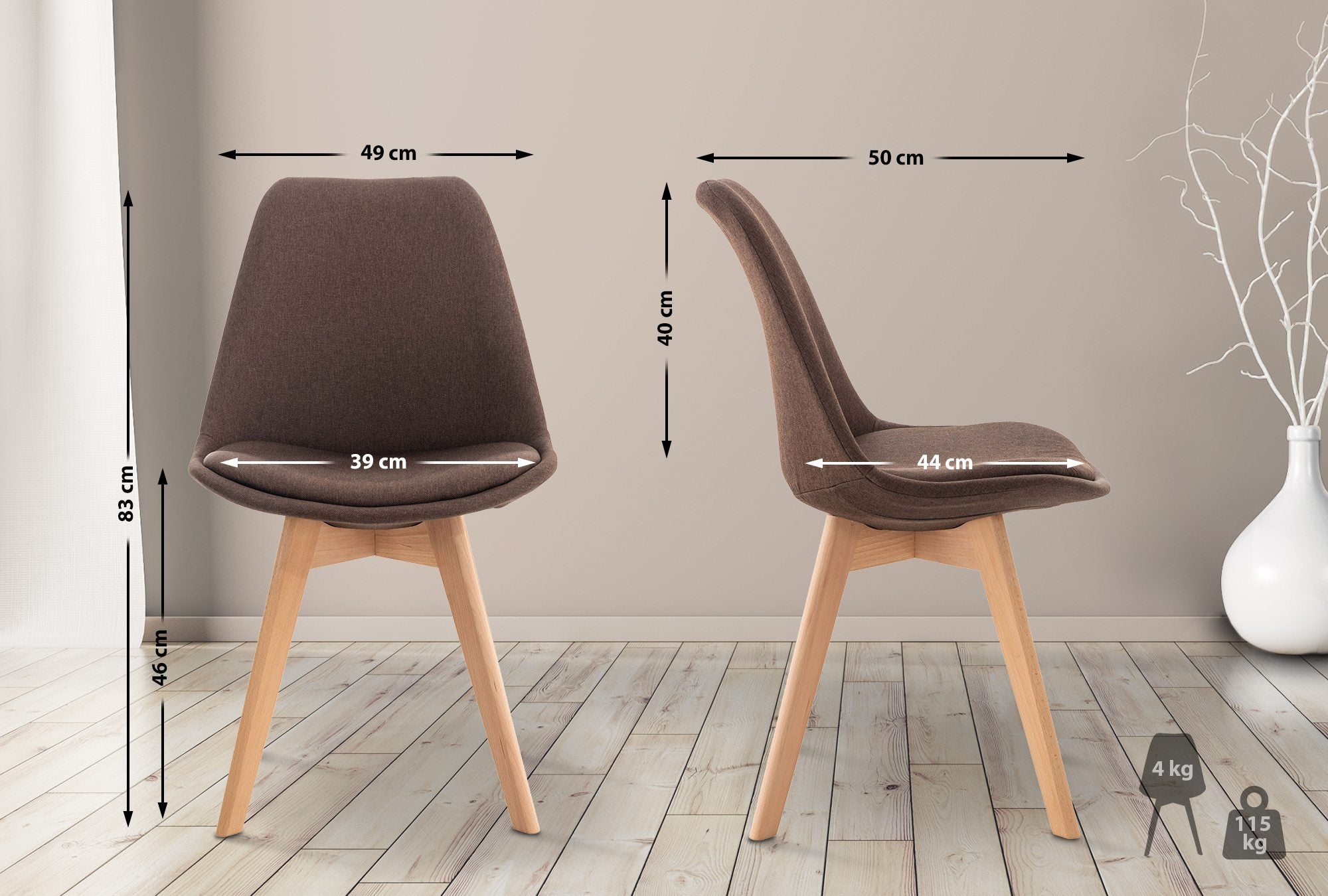 Chaise de salle à manger x1 design scandinave en tissu marron et pieds en bois clair 10_0002289