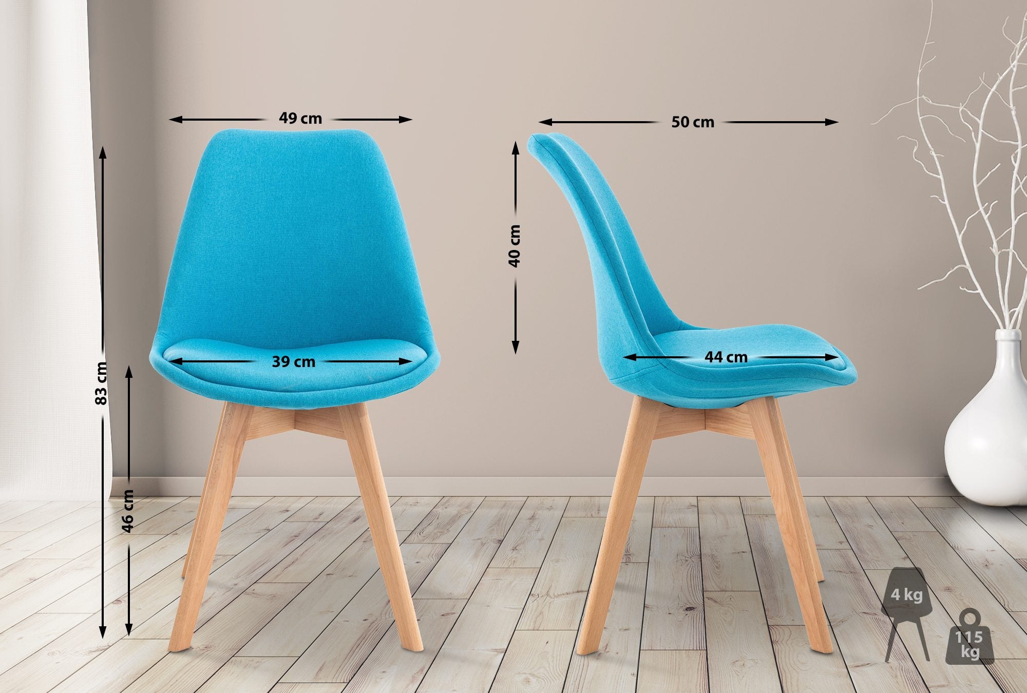 Chaise de salle à manger x1 design scandinave en tissu turquoise et pieds en bois clair 10_0002294