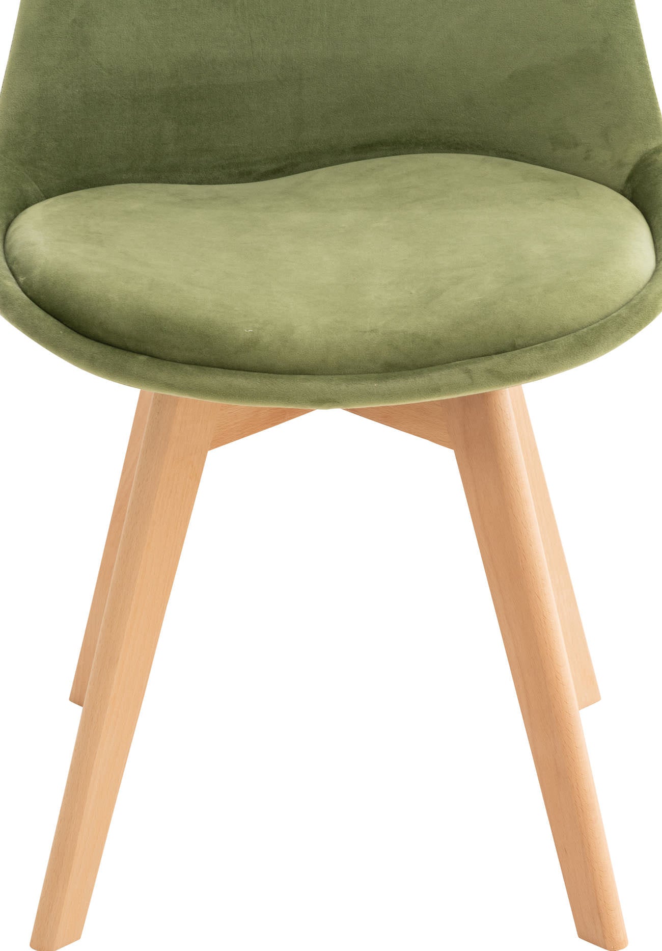 Chaise de salle à manger x1 design scandinave en velours vert clair et pieds en bois clair 10_0002287