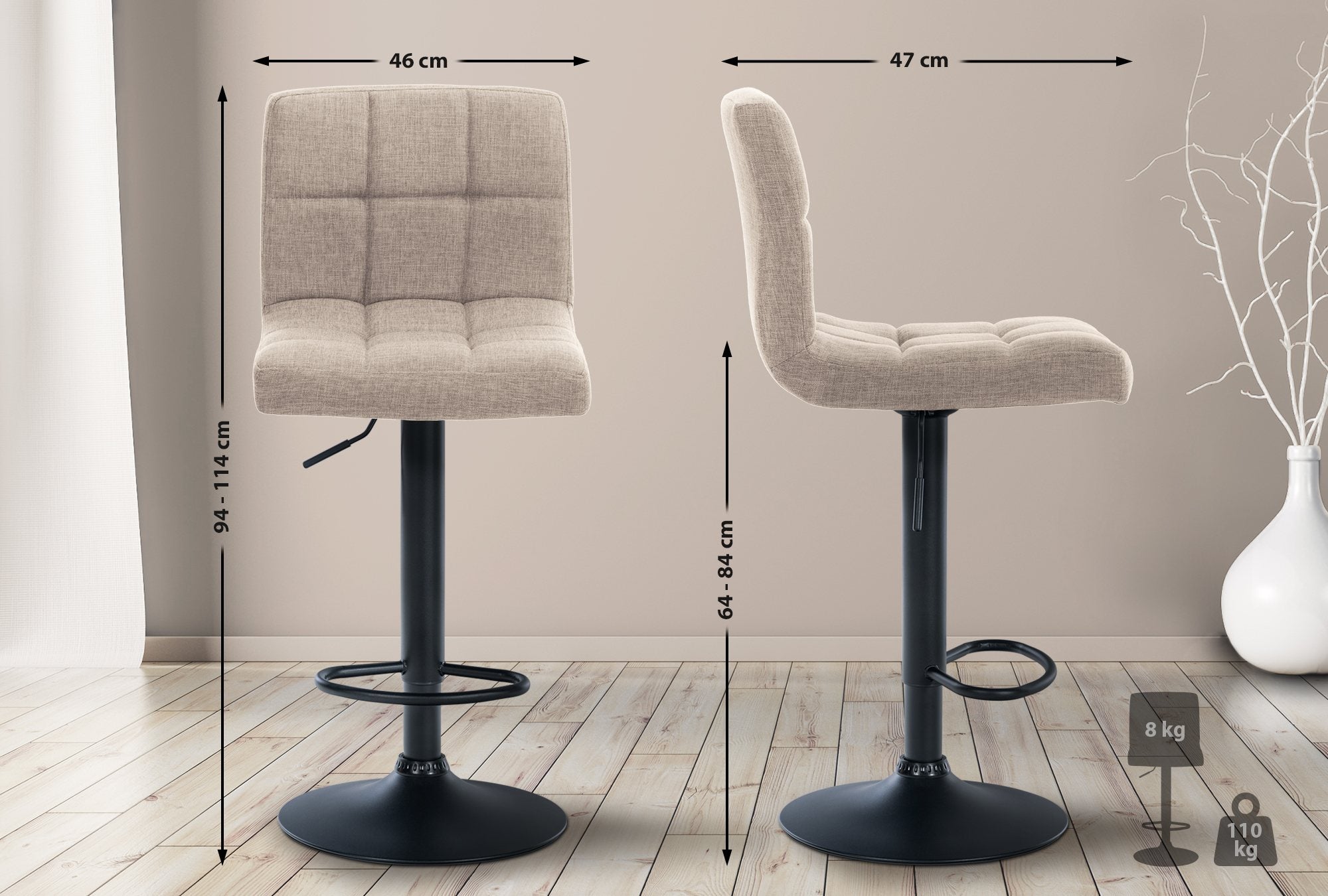 Le tabouret de bar allie fonctionnalité et confort dans un design élégant. Ce modèle est rembourré et réglable en hauteur en continu, s'adaptant ainsi à toutes les positions assises. Grâce au dossier, à l'assise pivotante à 360° et au repose-pieds confortable, vous pourrez rester assis confortablement pendant des heures.