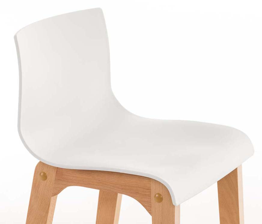 Lot de 2 tabourets de bar piètement à 4 pieds en bois assise plastique blanc style scandinave 10_0005781