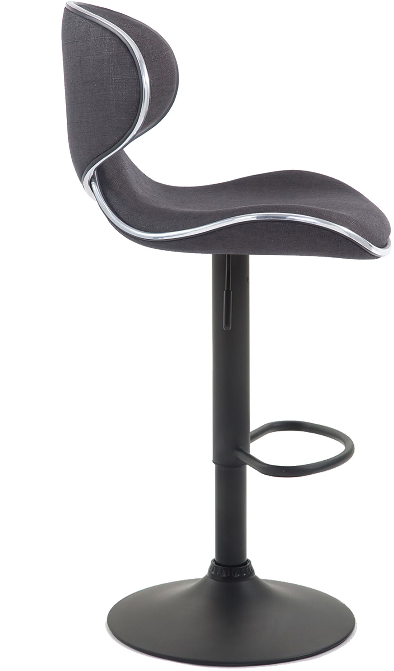 Le tabouret de bar est recouvert de tissu. Le rembourrage et le dossier haut offrent un bon soutien pour le dos. La structure en métal chromé assure la stabilité nécessaire. La hauteur du tabouret est réglable en continu grâce à un vérin à gaz. Le repose-pieds intégré garantit une assise sûre et confortable, même pendant de longues périodes. Un protecteur de sol est placé sous la plaque de base pour protéger votre sol des rayures disgracieuses.