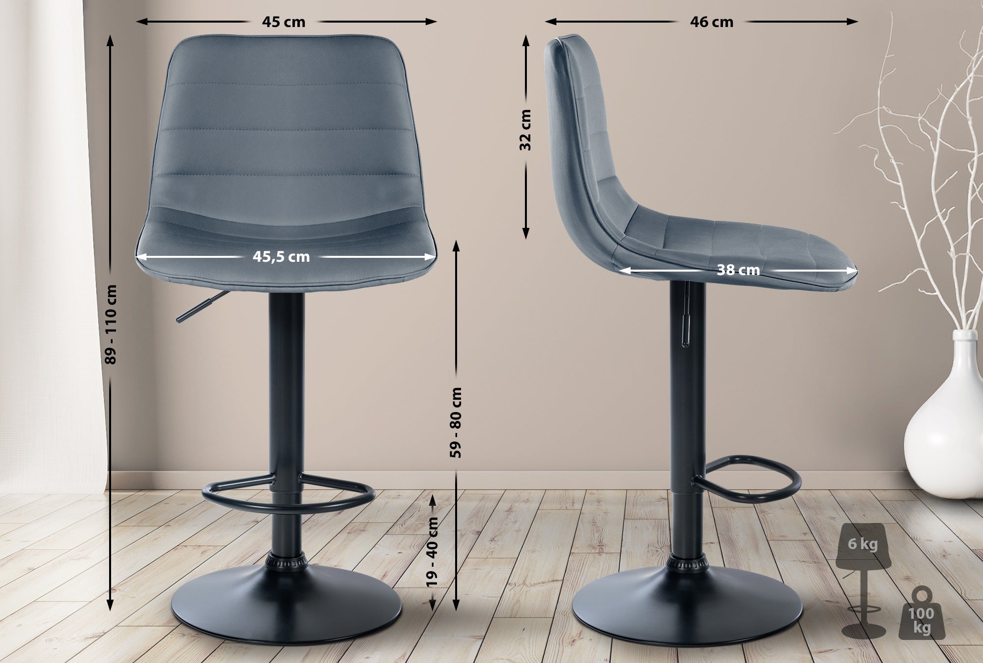 Ces tabourets de bar séduisent par leur confort optimal et leur design intemporel. Leur assise élégante vous promet une expérience d'assise exceptionnelle, tandis que leur dossier rembourré vous offre le soutien nécessaire pour rester assis confortablement pendant de longues périodes. Leur structure métallique est dotée d'un piètement en trompette, garantissant une grande stabilité. Leur repose-pieds incurvé offre un confort et une détente accrus. Nos tabourets sont réglables en hauteur grâce à un vérin à gaz. L'assise, repose-pieds compris, est pivotante à 360°, ce qui les rend parfaits pour tous les comptoirs.