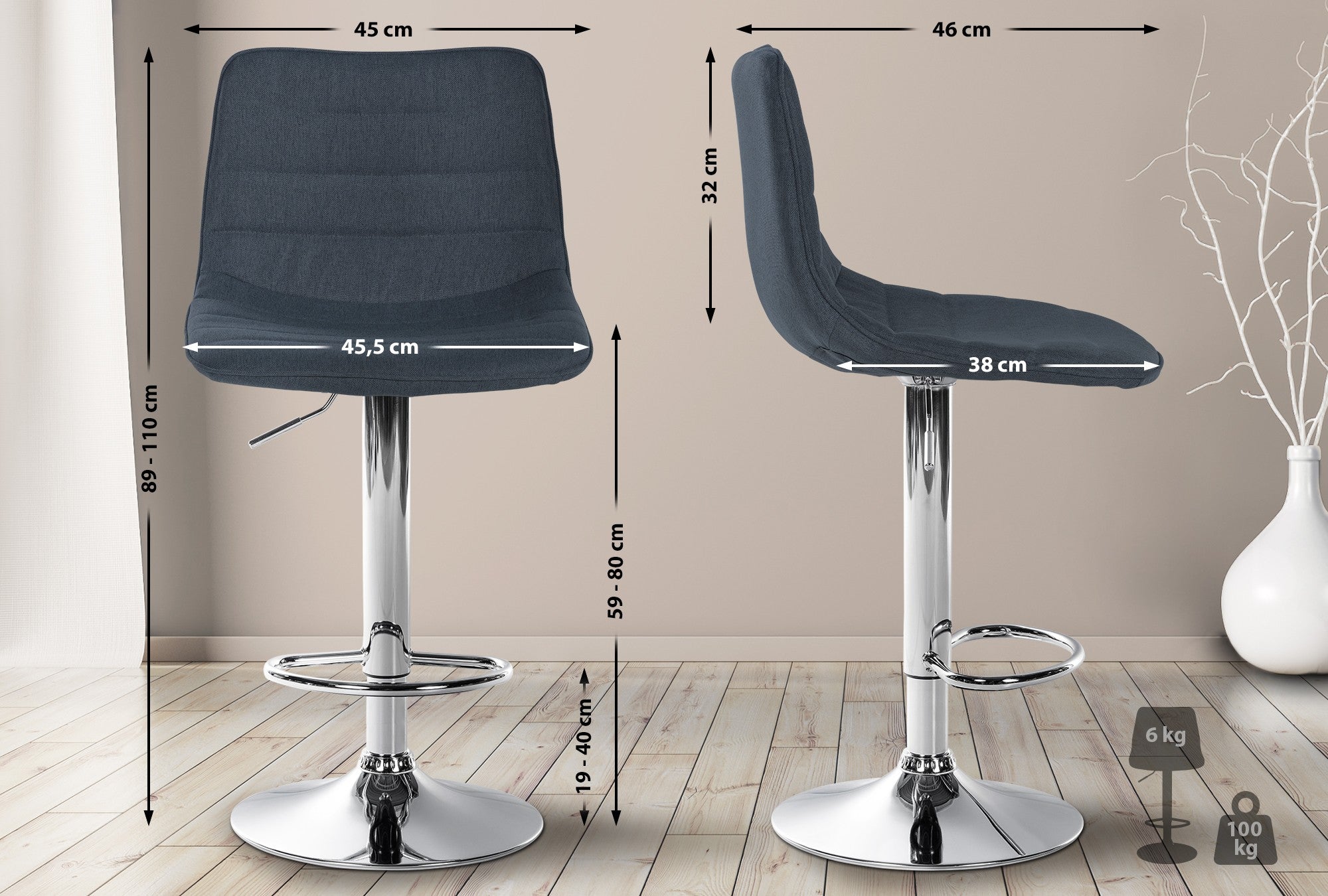 Nos tabourets sont réglables en hauteur en continu grâce à un vérin à gaz, et l'assise, y compris le repose-pieds, peut pivoter à 360°, ce qui les rend parfaits pour tous les comptoirs. Les combinaisons de couleurs au choix vous permettent de trouver le tabouret de bar idéal pour votre salon, salle à manger ou cuisine.