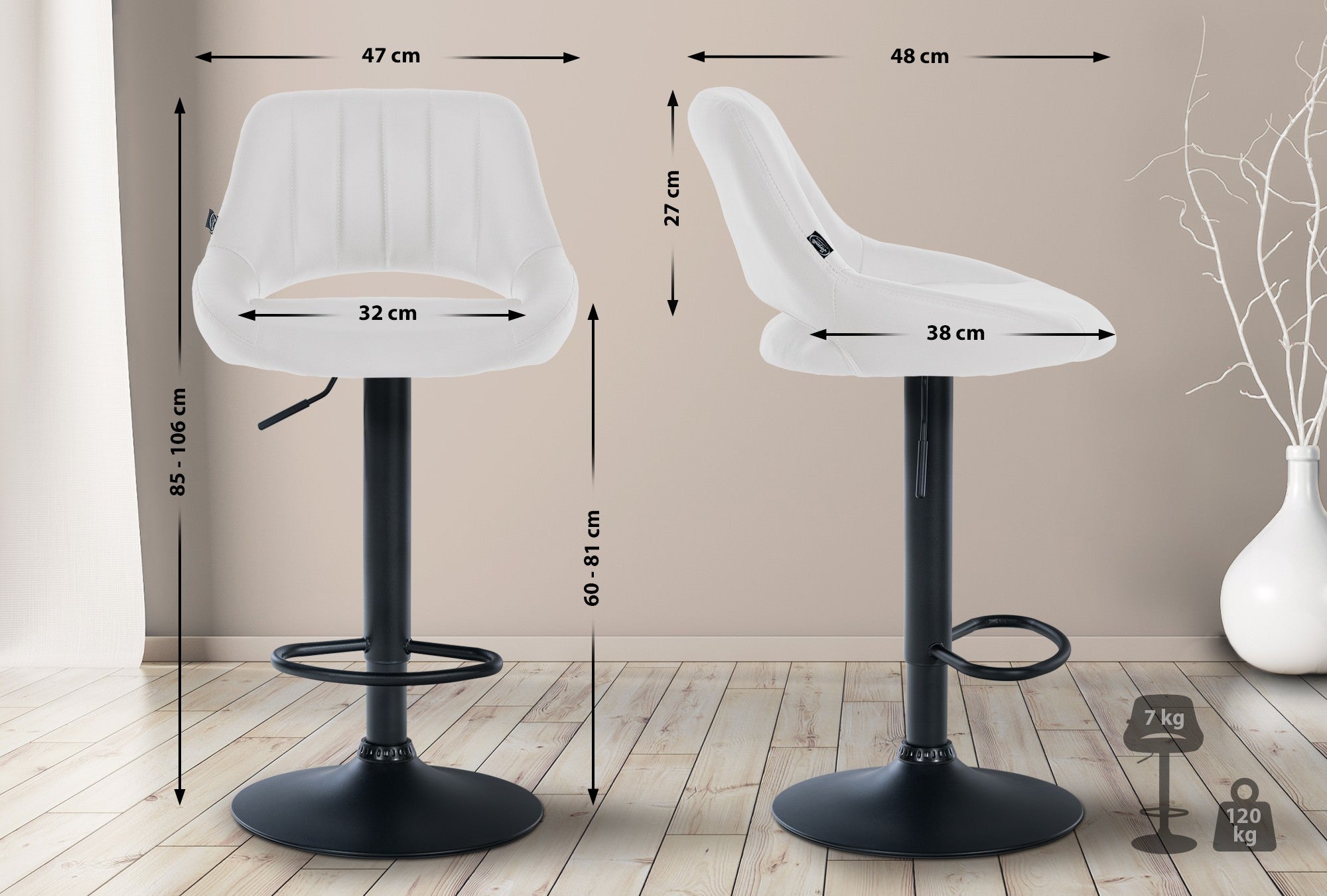 Hauteur d'assise : 60 - 81 cm