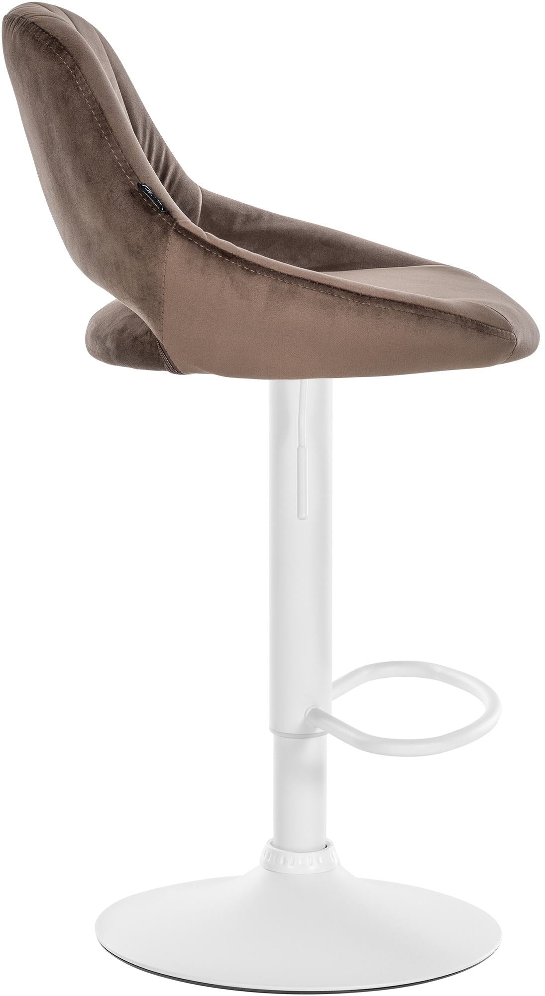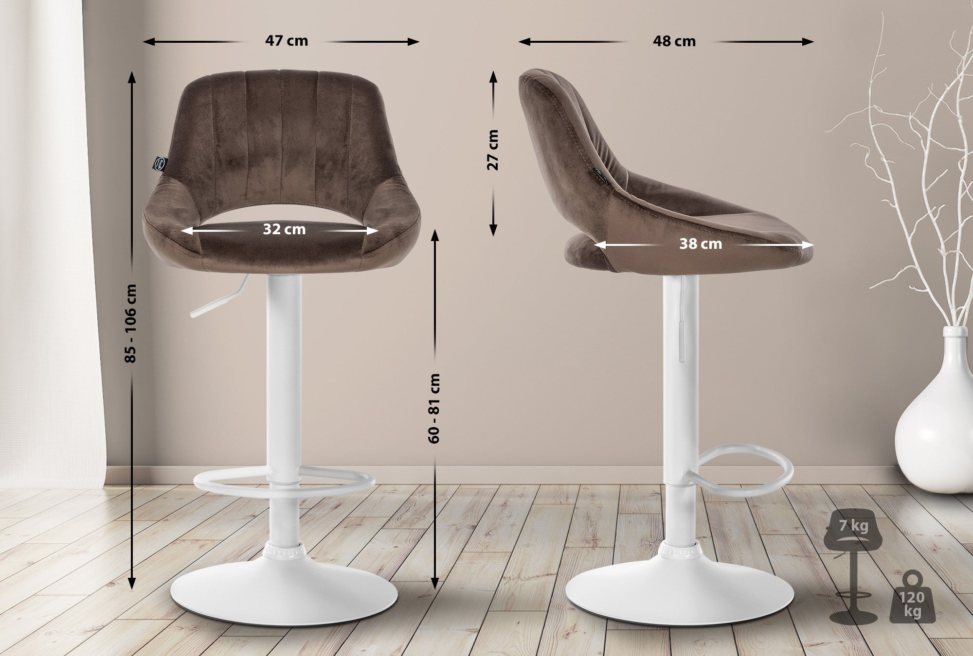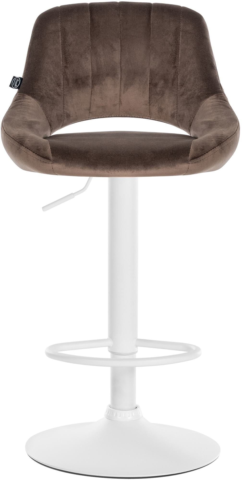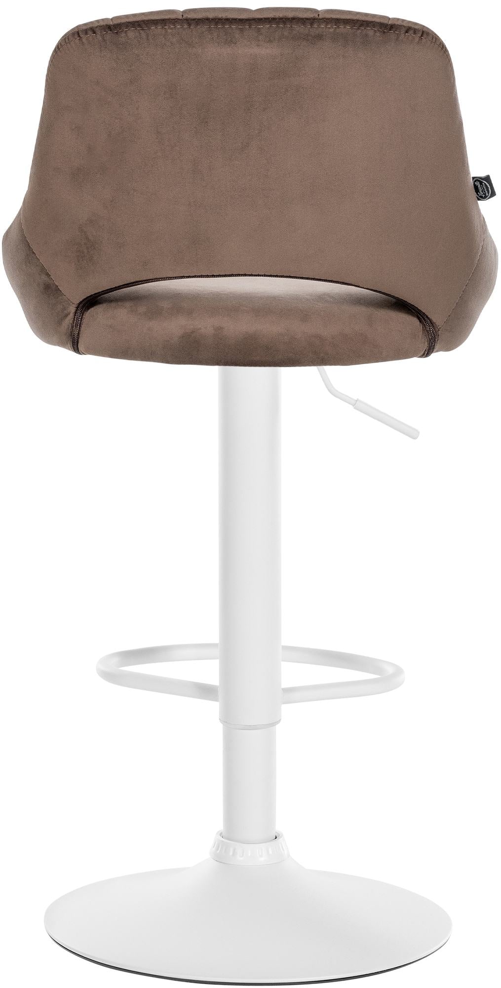 Lot de 2 tabourets de bar réglables en velours marron dossier ajouré et pied métal blanc 10_0005586
