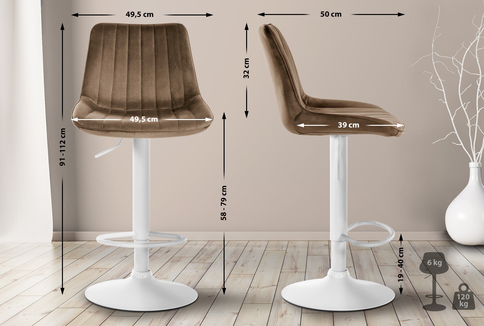 Lot de 2 tabourets de bar réglable en hauteur pivotant à 360° assise en velours marron couture verticale pied métal blanc 10_0006644