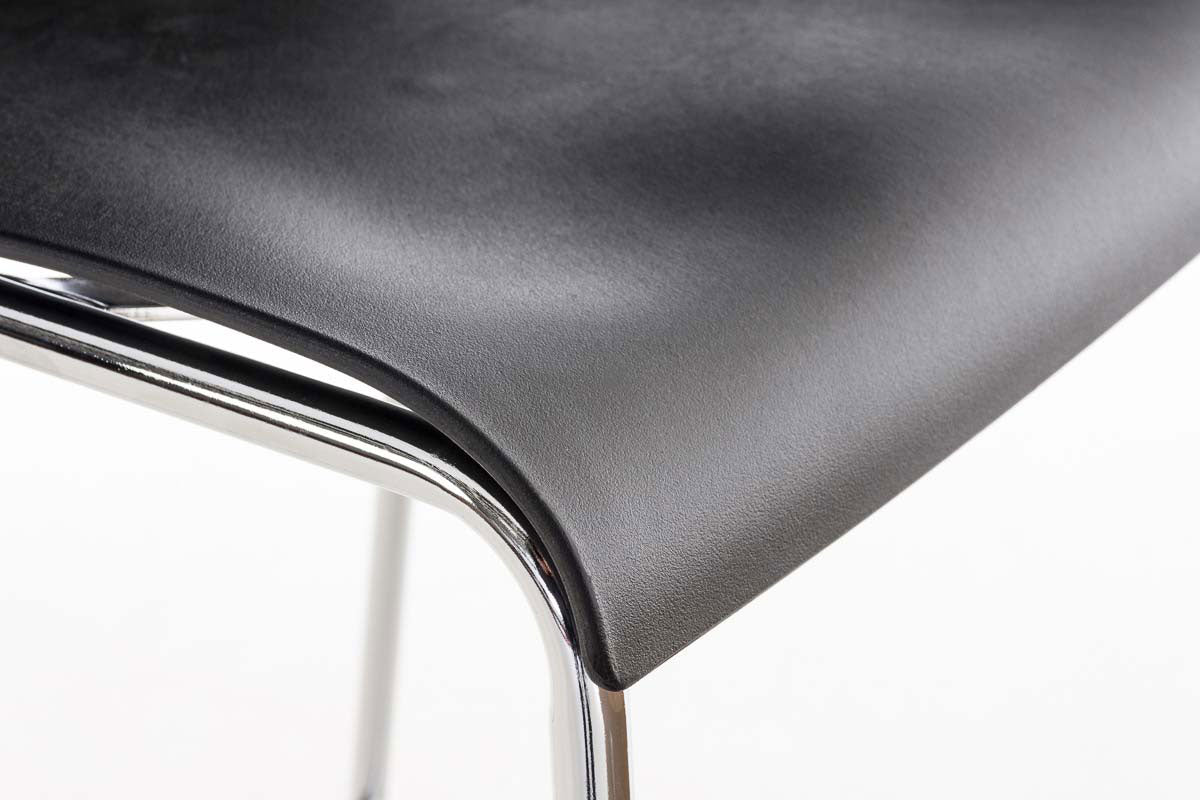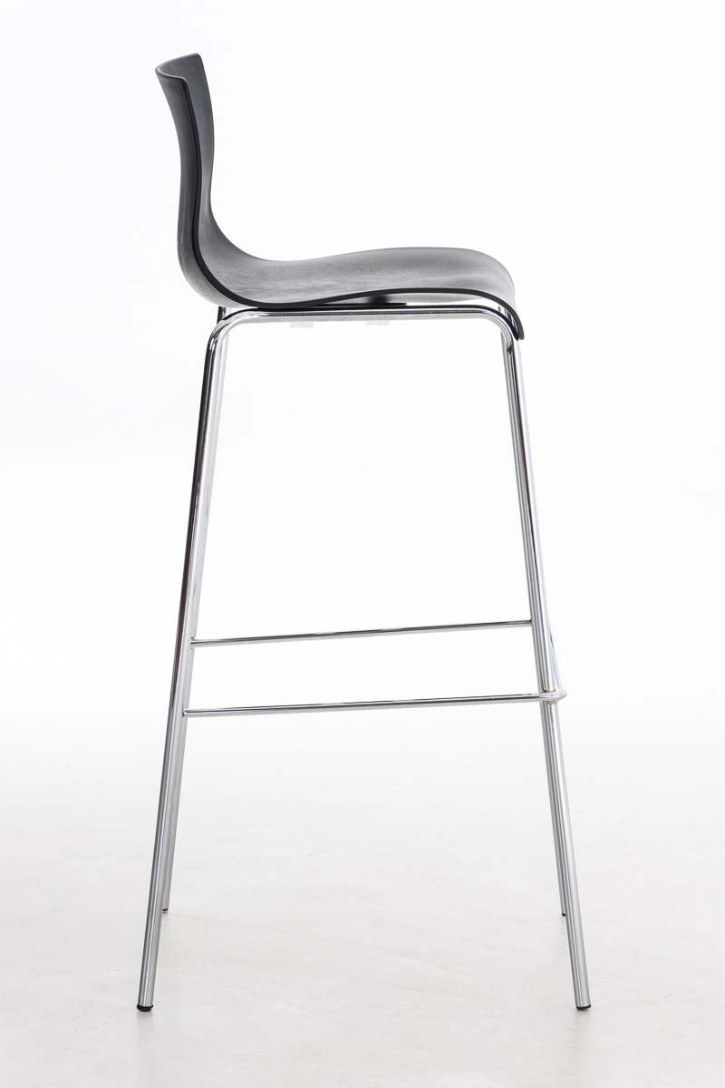 Tabouret de bar avec repose-pieds dossier incurvé en plastique noir et 4 pieds en métal chromé 10_0004939
