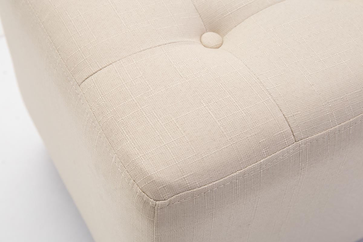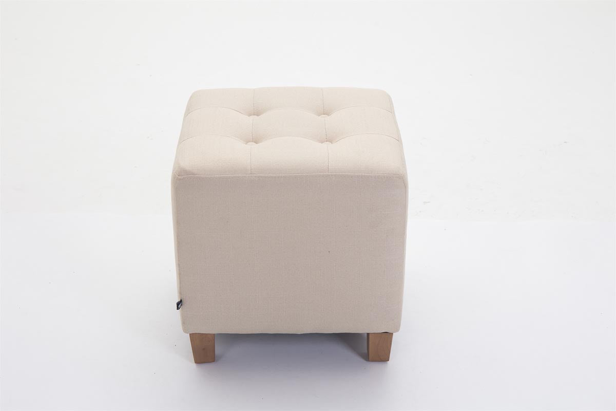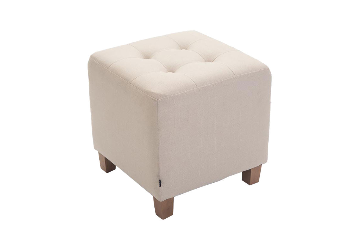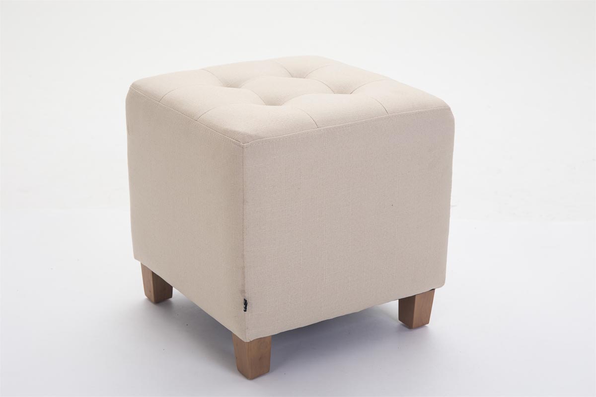 Tabouret bas repose-pieds pouf capitonné en tissu crème pieds en bois 45x46 cm 10_0000059