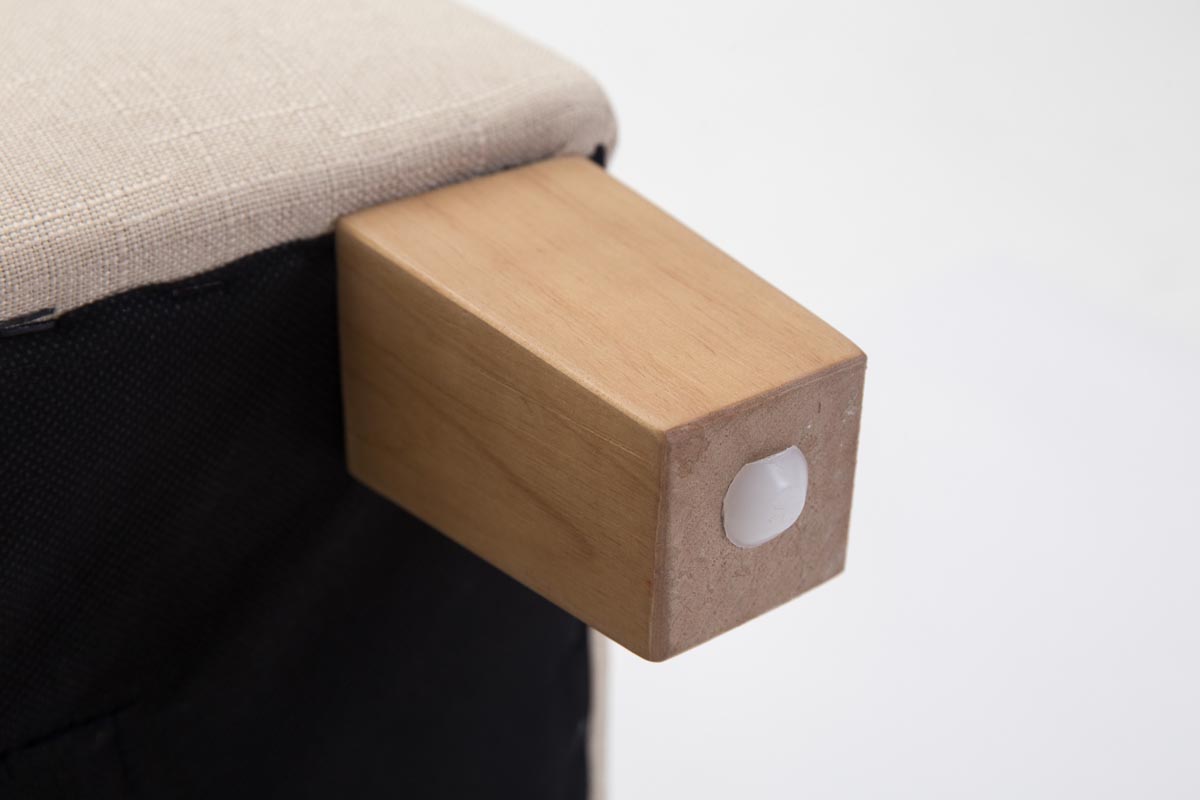 En forme de cube, le tabouret est doté de quatre pieds en bois résistant et d'un revêtement confortable en tissu. Il est disponible en plusieurs coloris.