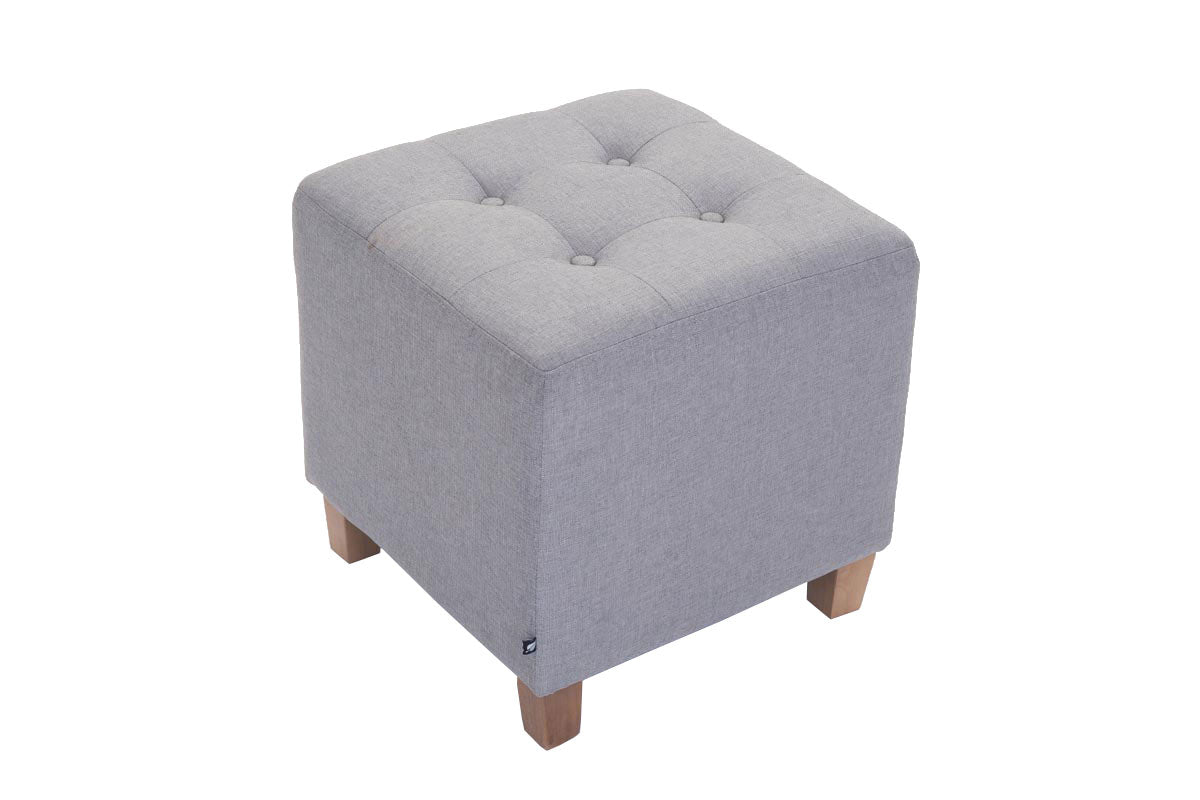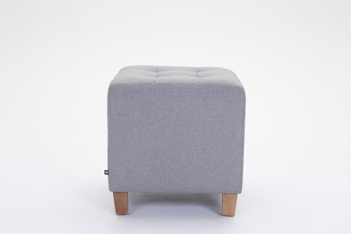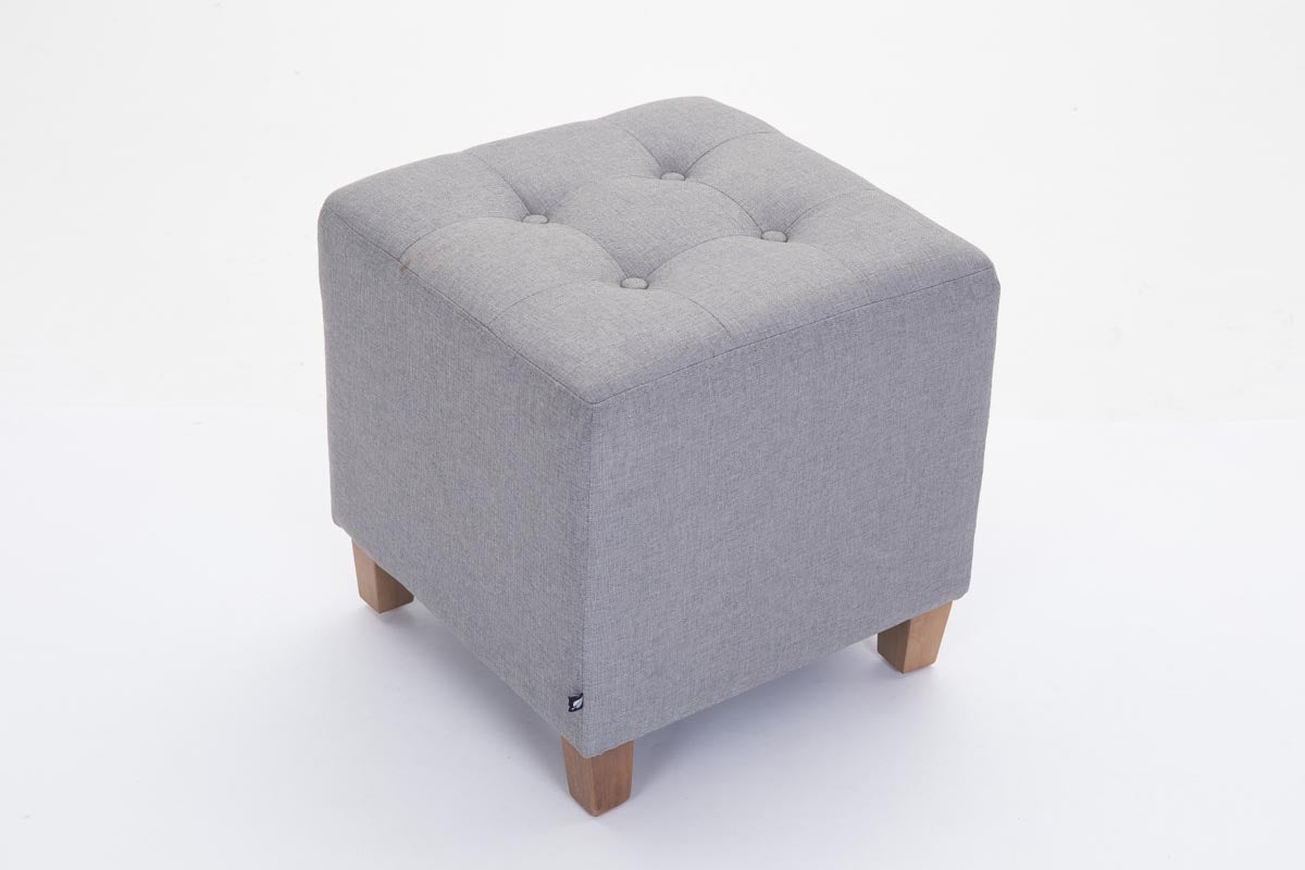 En forme de cube, le tabouret est doté de quatre pieds en bois résistant et d'un revêtement confortable en tissu. Il est disponible en plusieurs coloris.