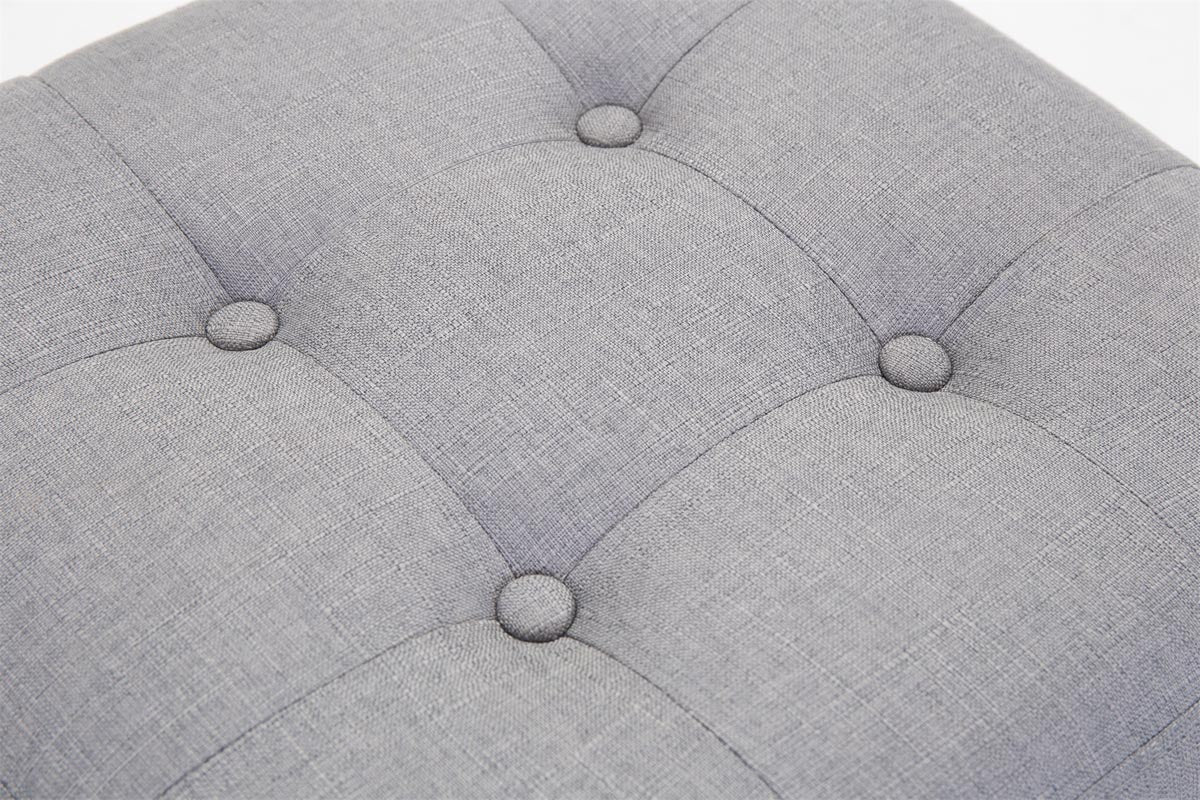 Tabouret bas repose-pieds pouf capitonné en tissu gris clair pieds en bois 45x46 cm 10_0000061