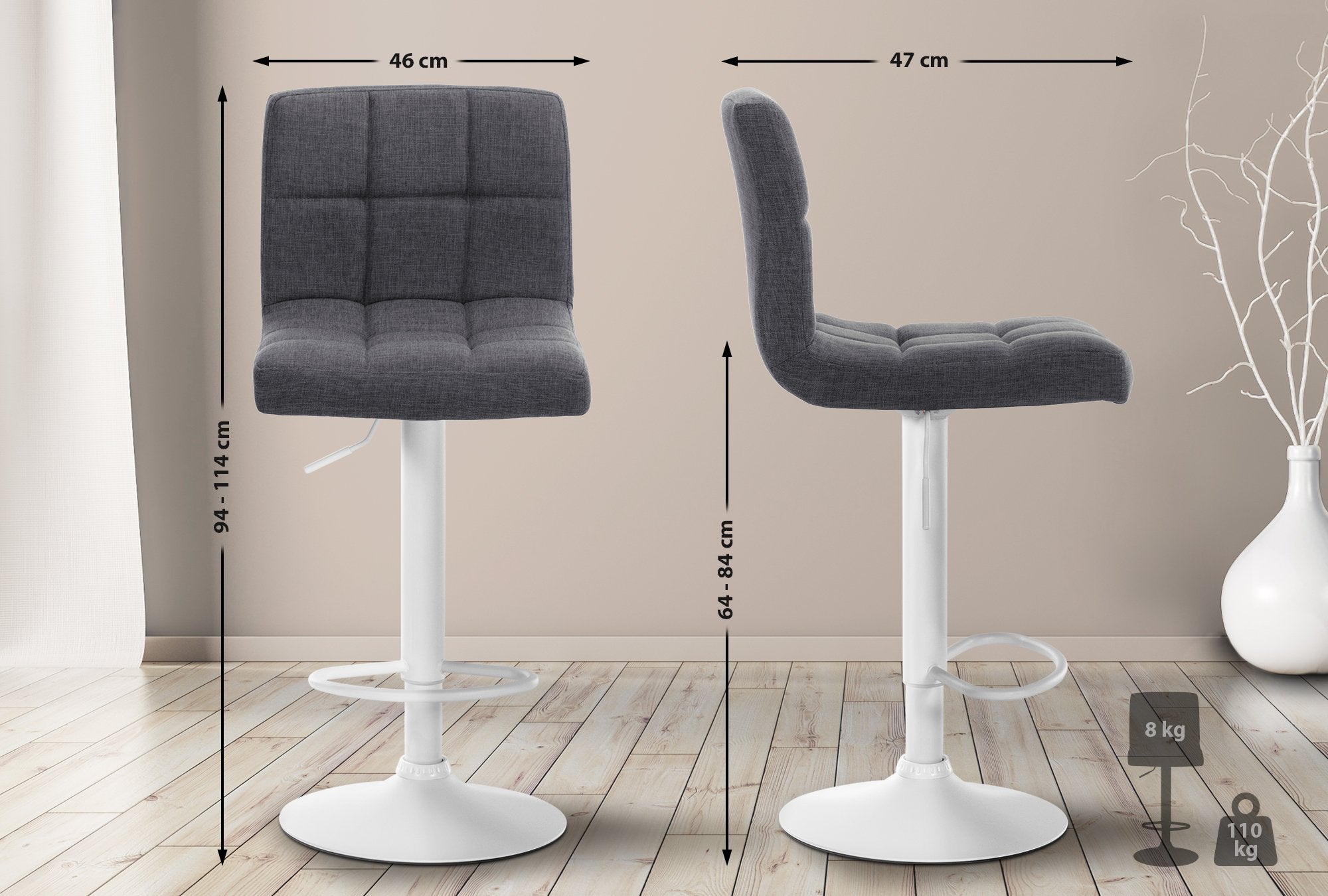 Le tabouret de bar allie fonctionnalité et confort dans un design élégant. Grâce à son assise confortable, il est le choix idéal pour tout événement ou usage privé. Ce modèle est réglable en hauteur en continu et s'adapte donc à toutes les positions assises. Grâce au dossier, à l'assise pivotante à 360° et au repose-pieds confortable, vous pourrez vous asseoir confortablement pendant des heures. L'assise est recouverte d'un tissu de haute qualité et la structure en métal.