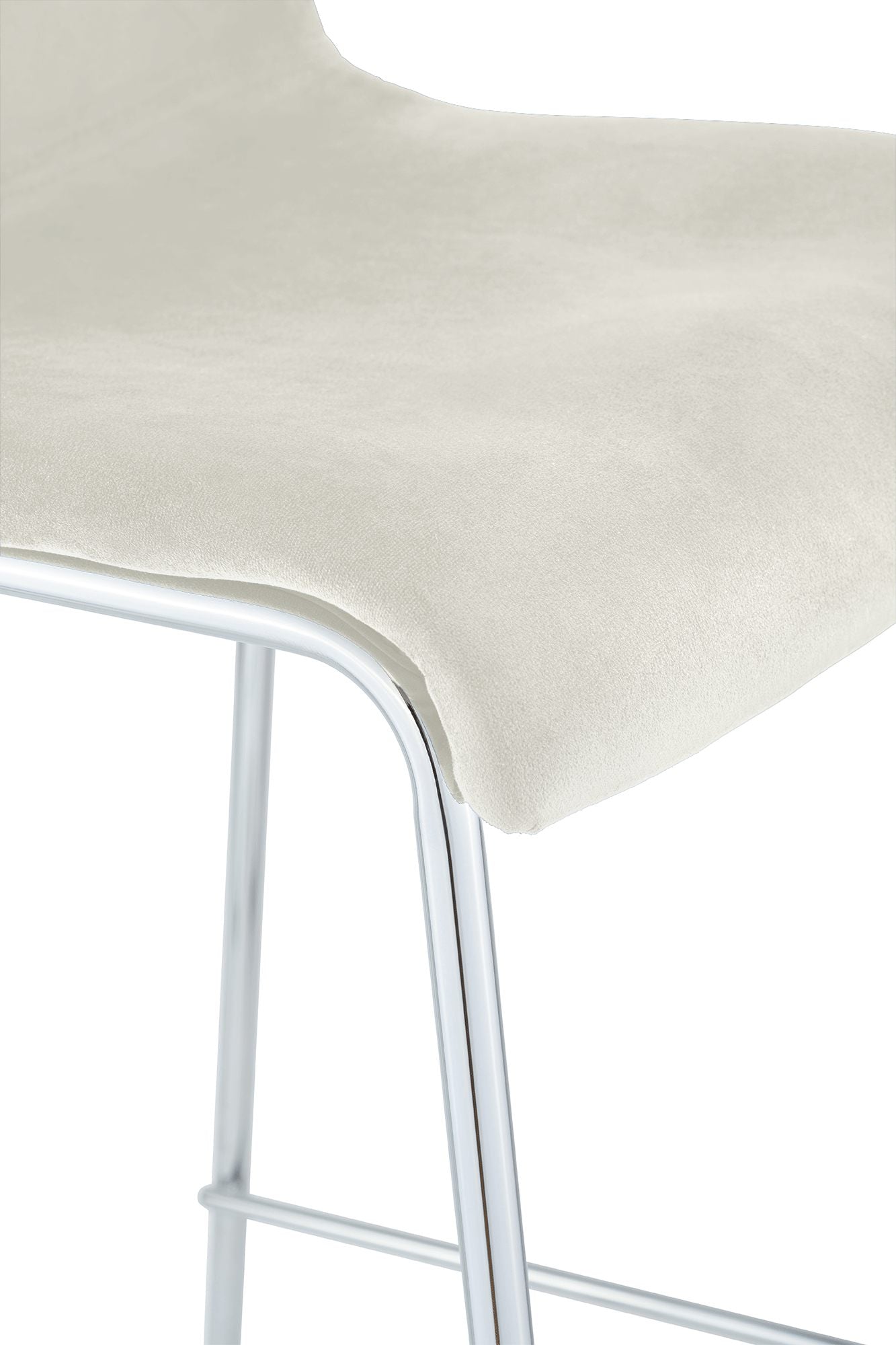 Tabouret de bar x1 dossier bas 4 pieds en métal chromé assise en velours crème 10_0005826