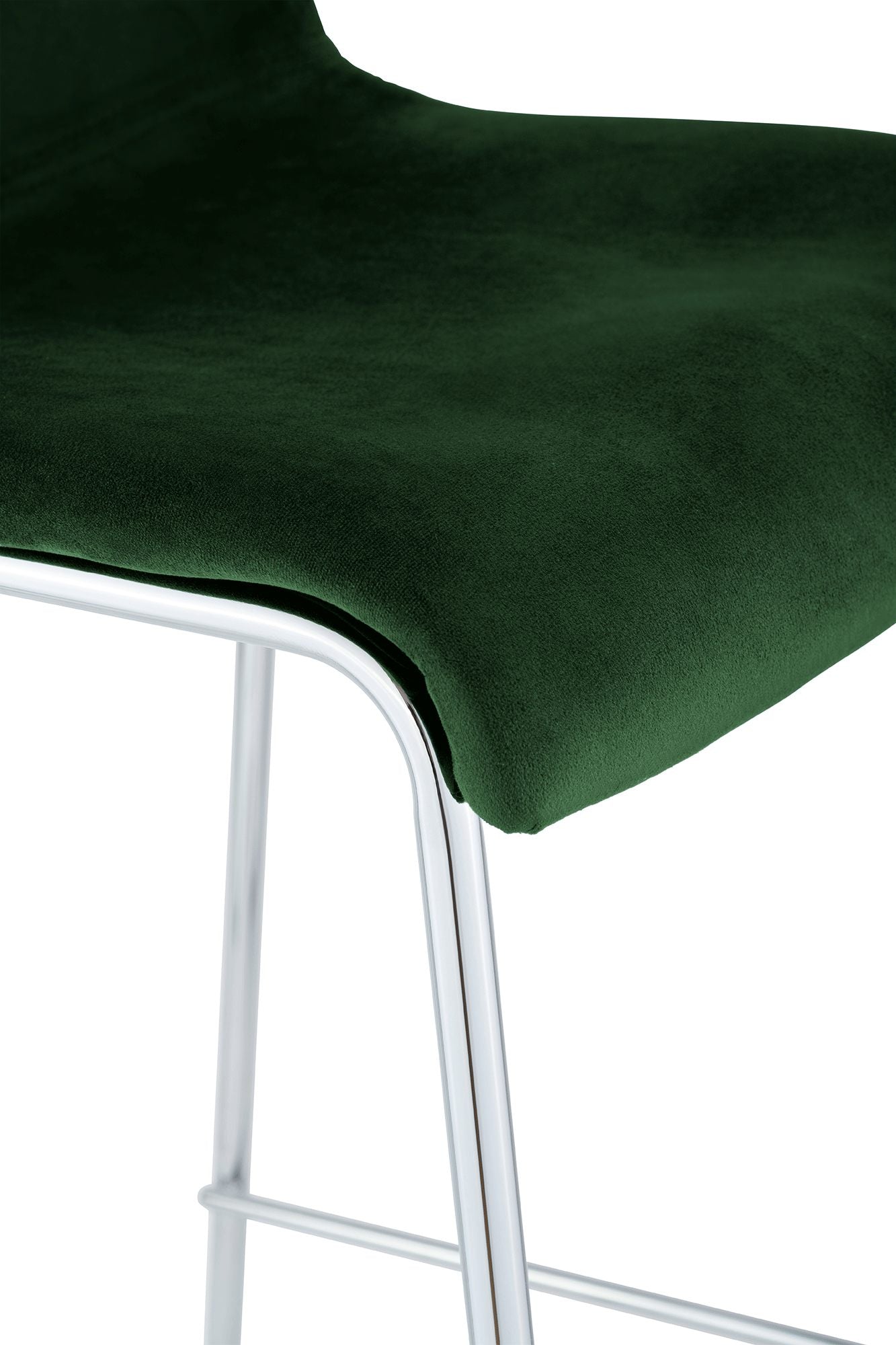 Tabouret de bar x1 dossier bas 4 pieds en métal chromé assise en velours vert 10_0005947