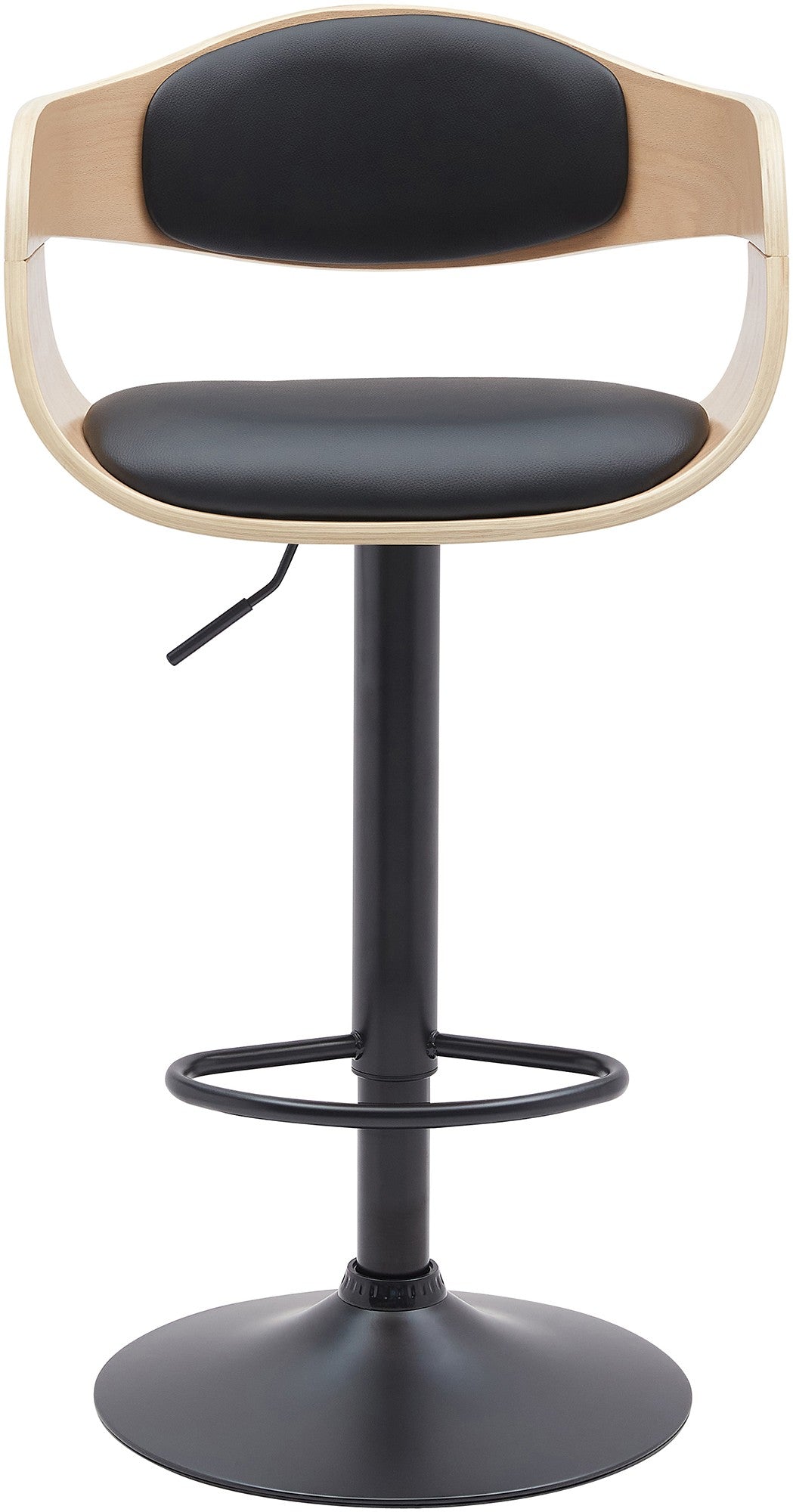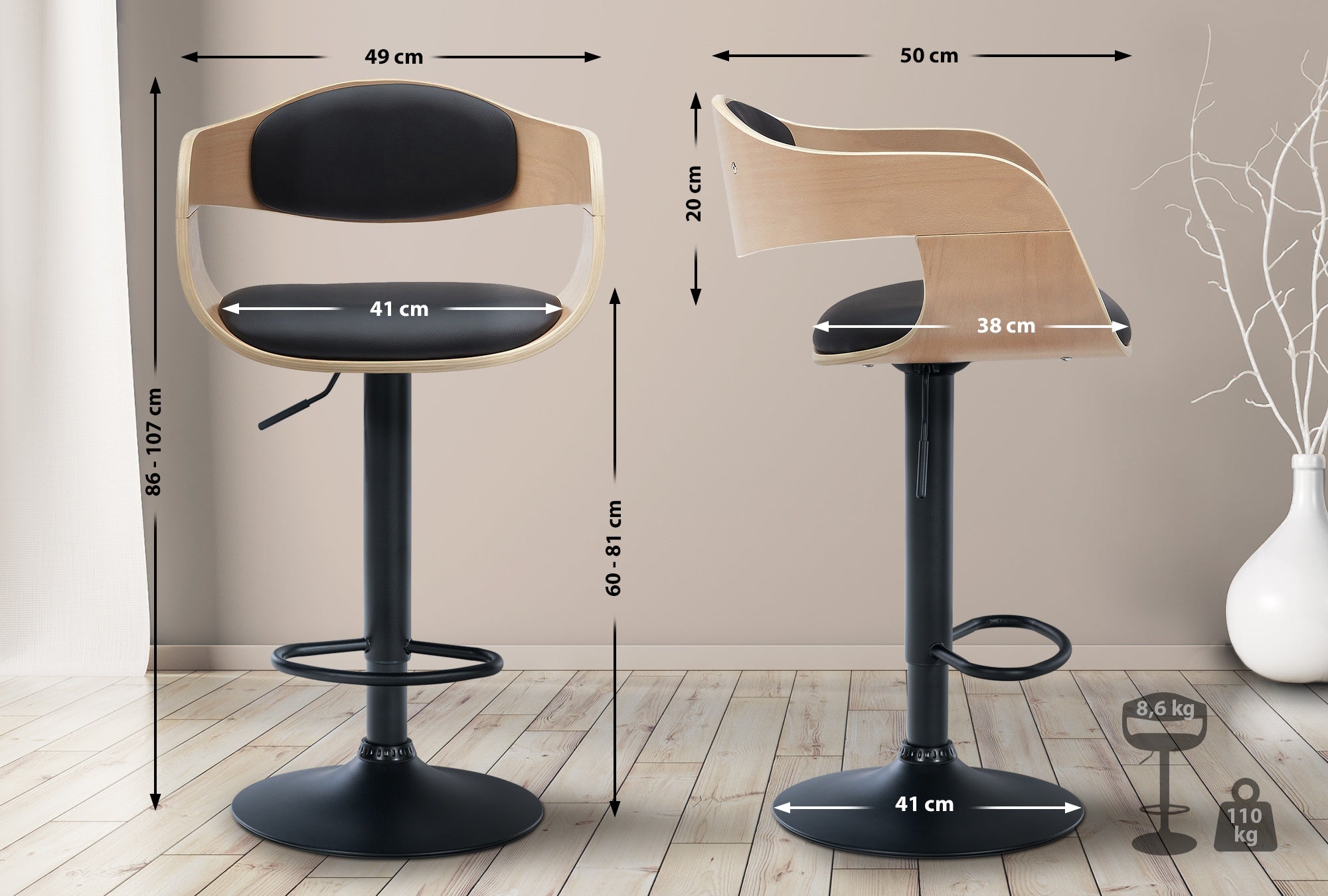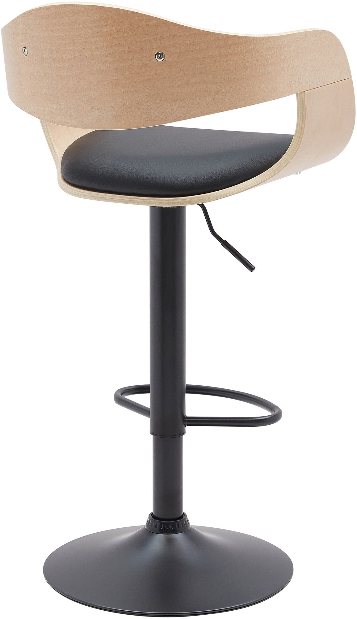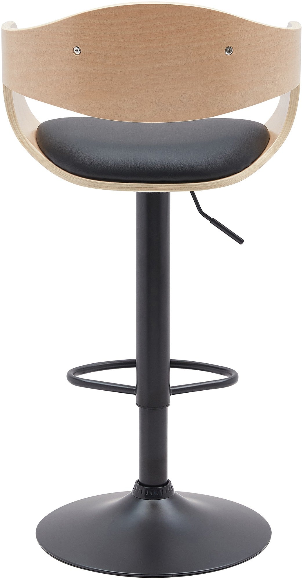 Tabouret de bar x1 design scandinave en PVC noir et structure en bois clair pieds métal noir 10_0005035