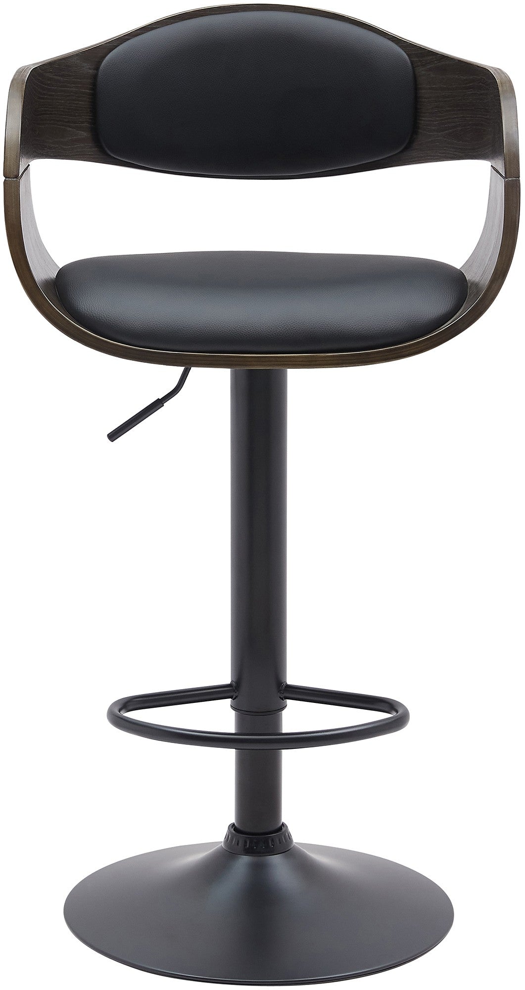 Tabouret de bar x1 design scandinave en PVC noir et structure en bois gris pieds métal noir 10_0005037