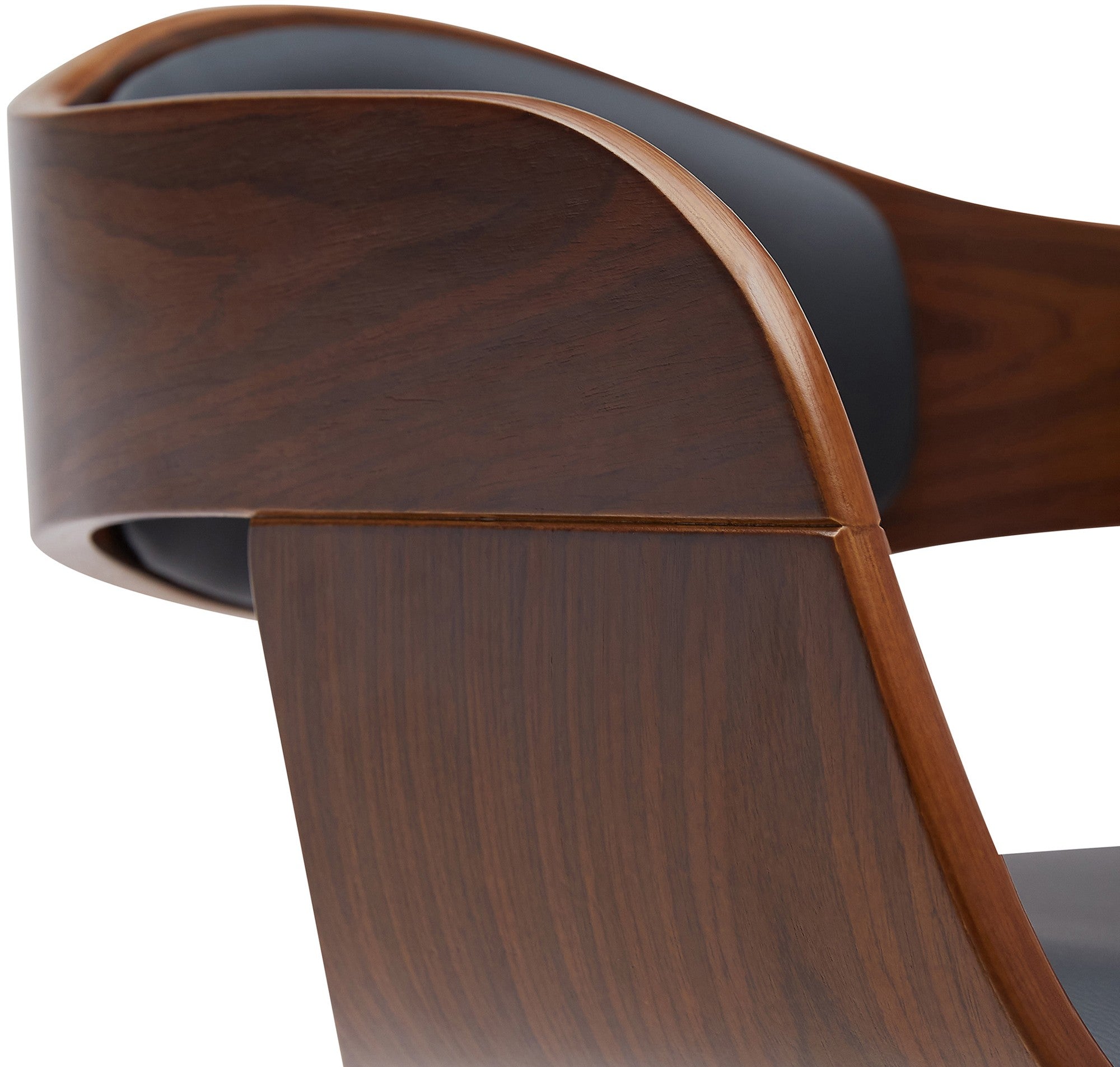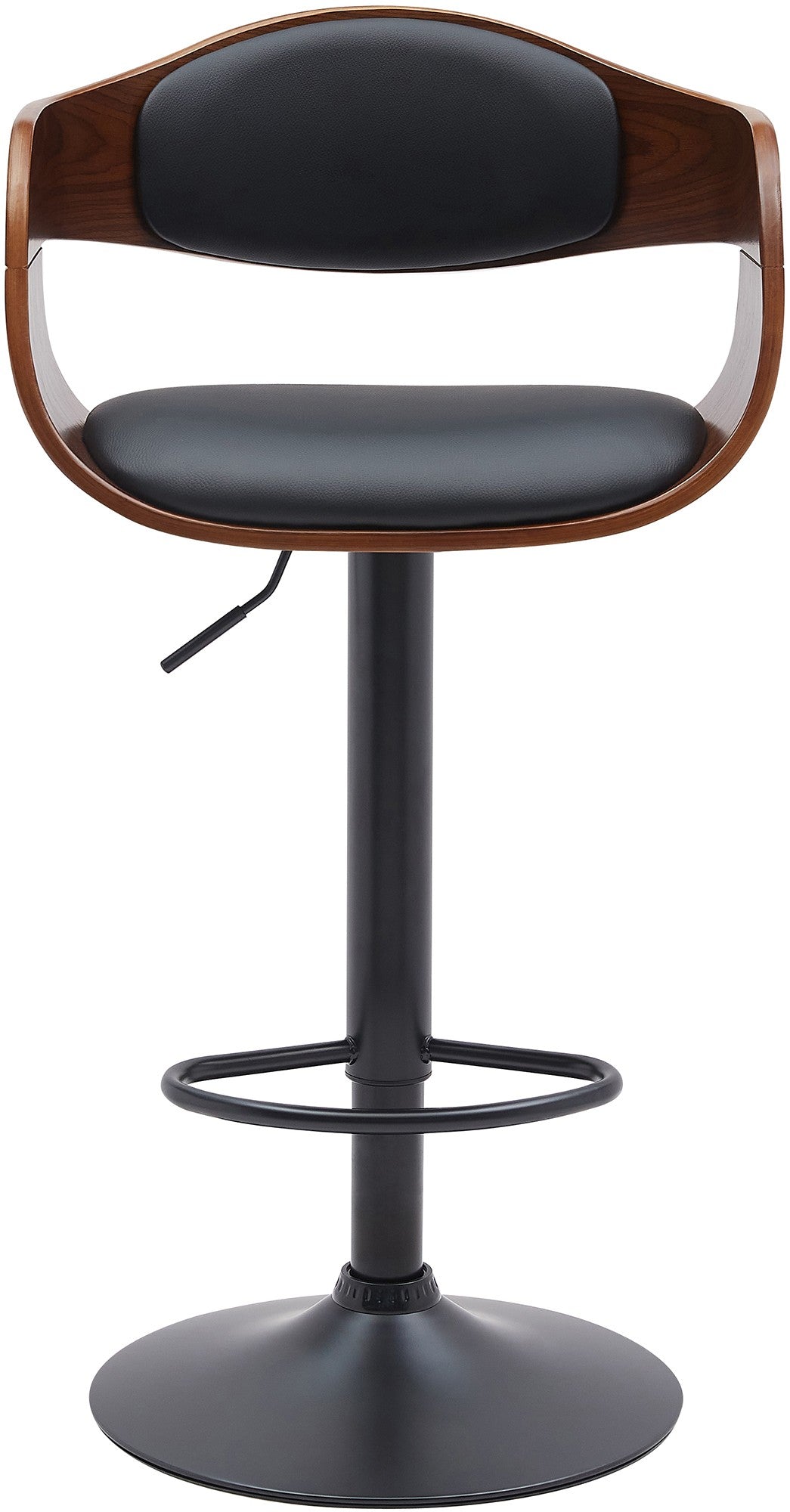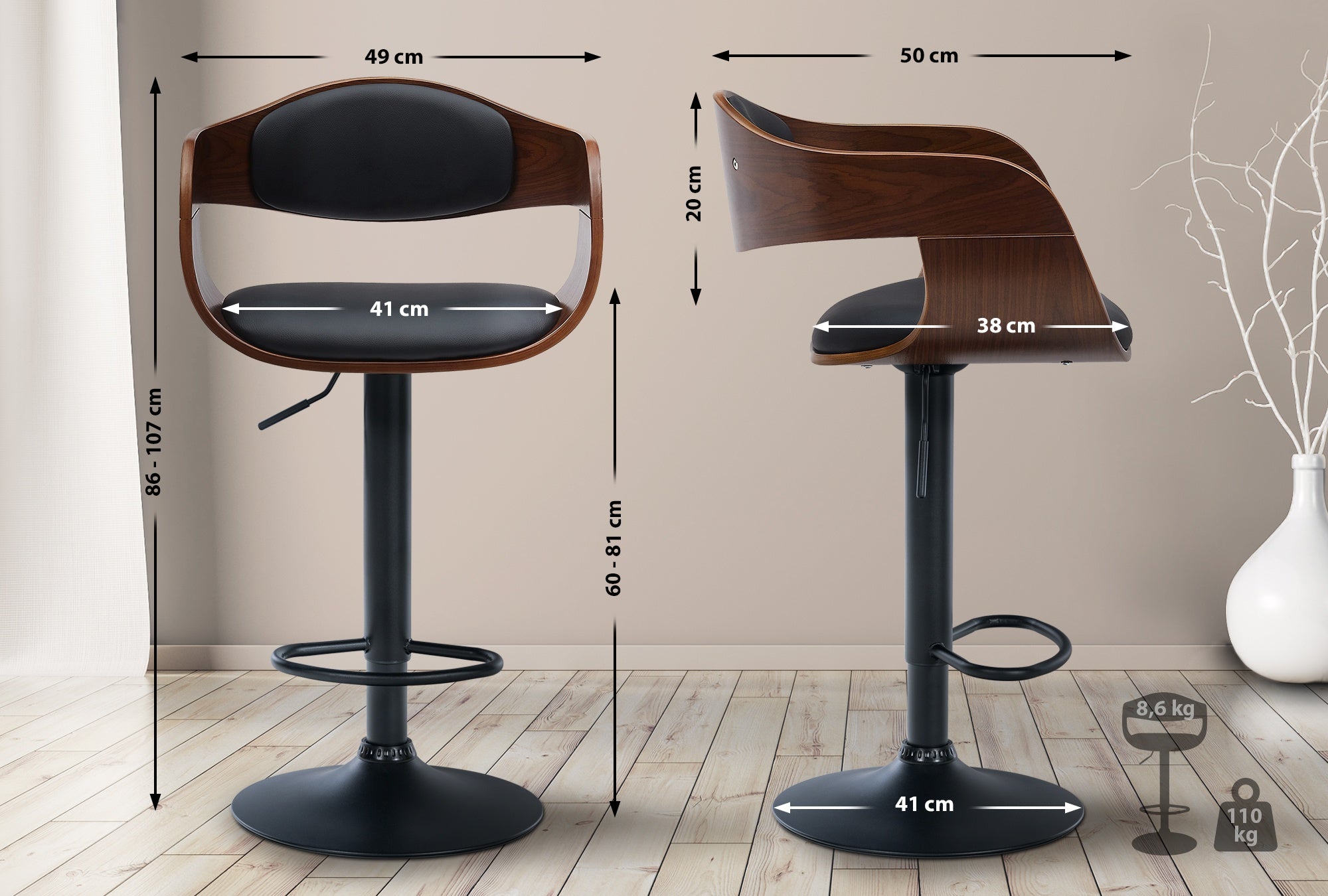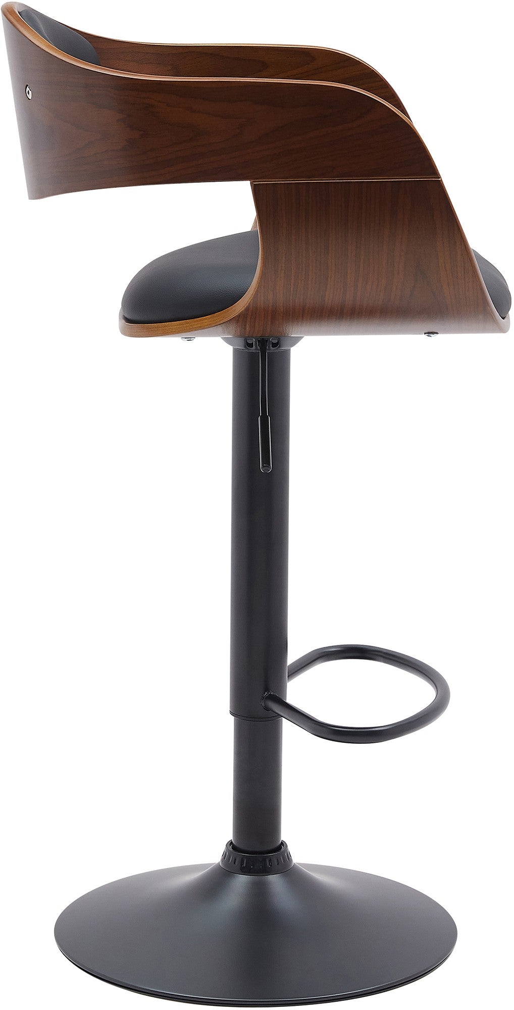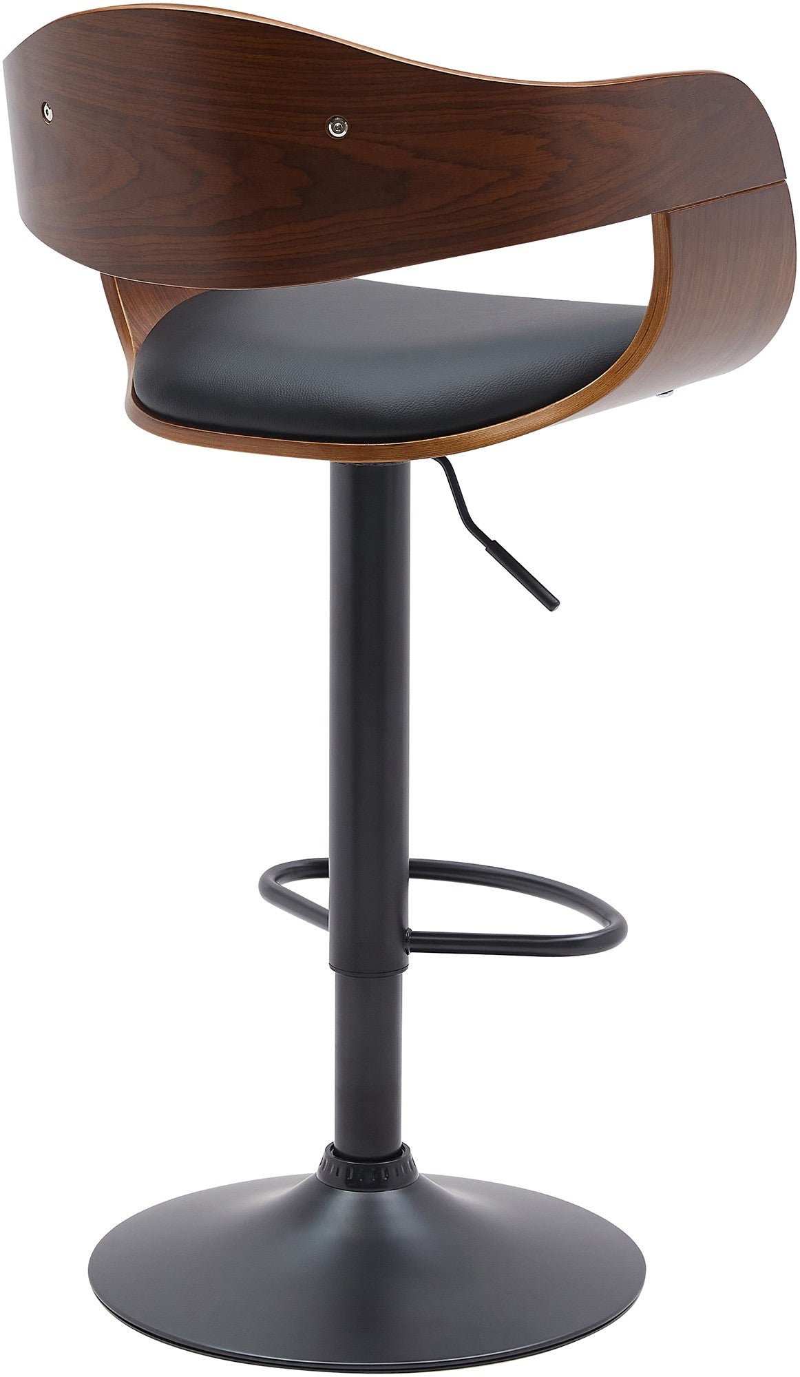 Tabouret de bar x1 design scandinave en PVC noir et structure en bois noyer pieds métal noir 10_0005036